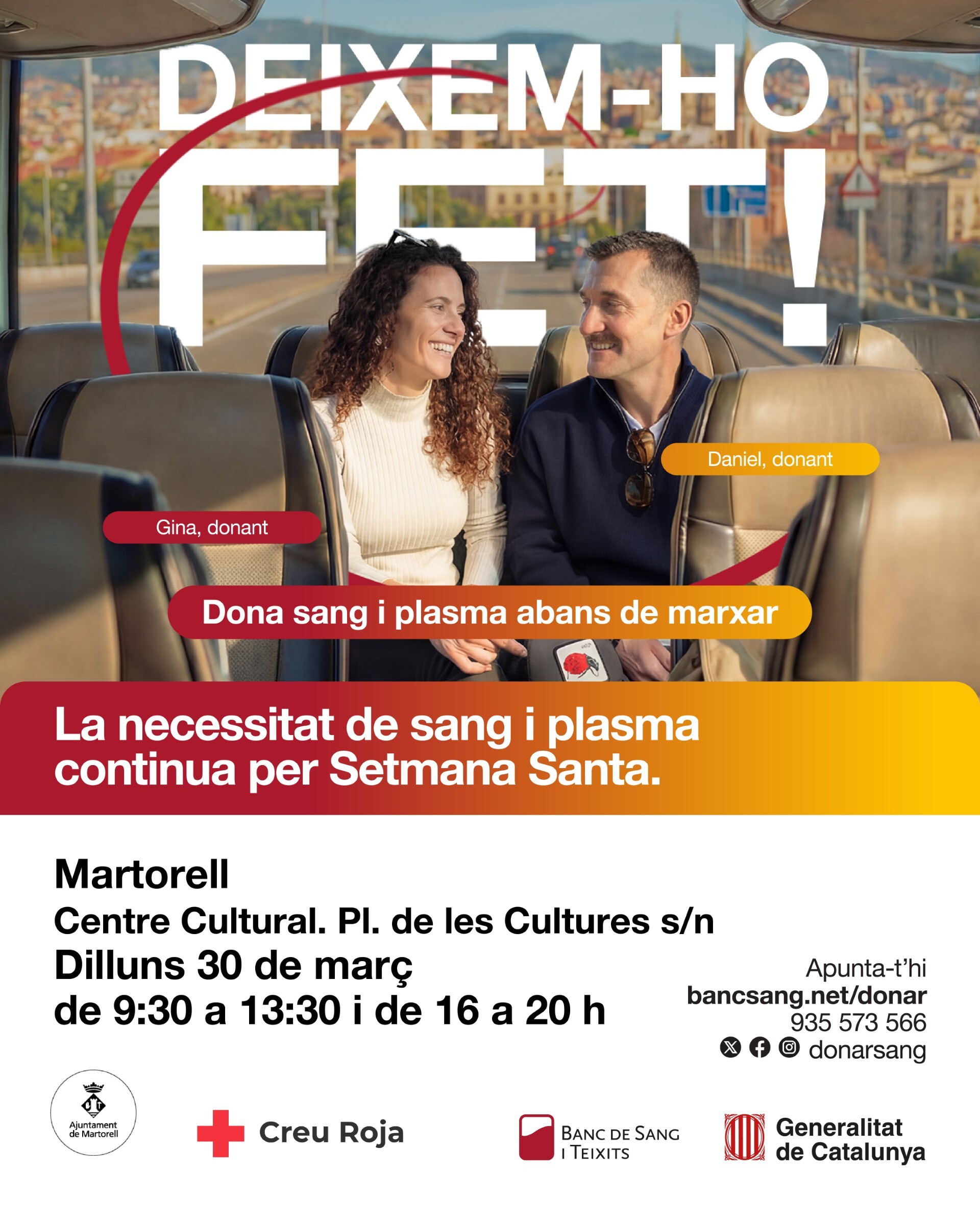 A Martorell, es podrà donar sang aquest dilluns, 30 de març, de 9.30 a 13.30h i de 16.00 a 20.00h, a la Sala Muxart del Centre Cultural.