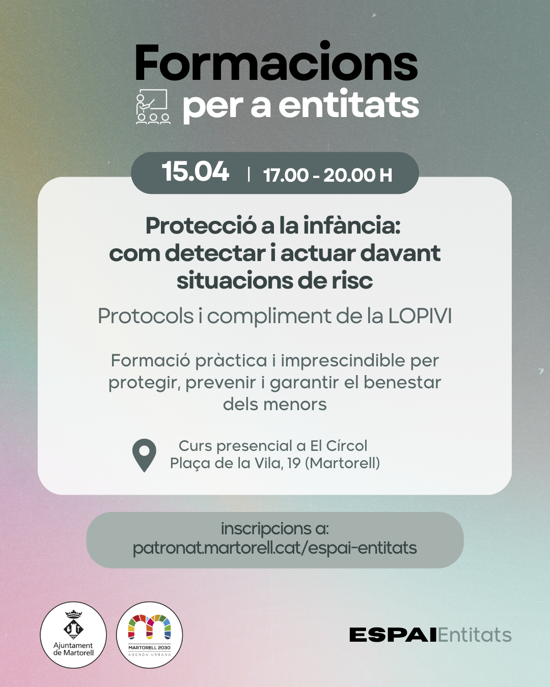 La tercera sessió serà ‘Protecció a la infància: com detectar i actuar davant situacions de risc’. L’Escola EFA ensenyarà a interpretar, identificar i actuar amb rigor davant possibles situacions de maltractament infantil i/ o abús distingir i interpretar situacions de maltractament infantil i/o abús sexual en contextos educatius. També vol ajudar a gestionar casos reals amb protocols d’actuació, eines pràctiques i criteris professionals, assegurant el compliment de la LOPIVI –llei que estableix obligacions clares per garantir la seguretat i el benestar dels menors- i la seva protecció integral.