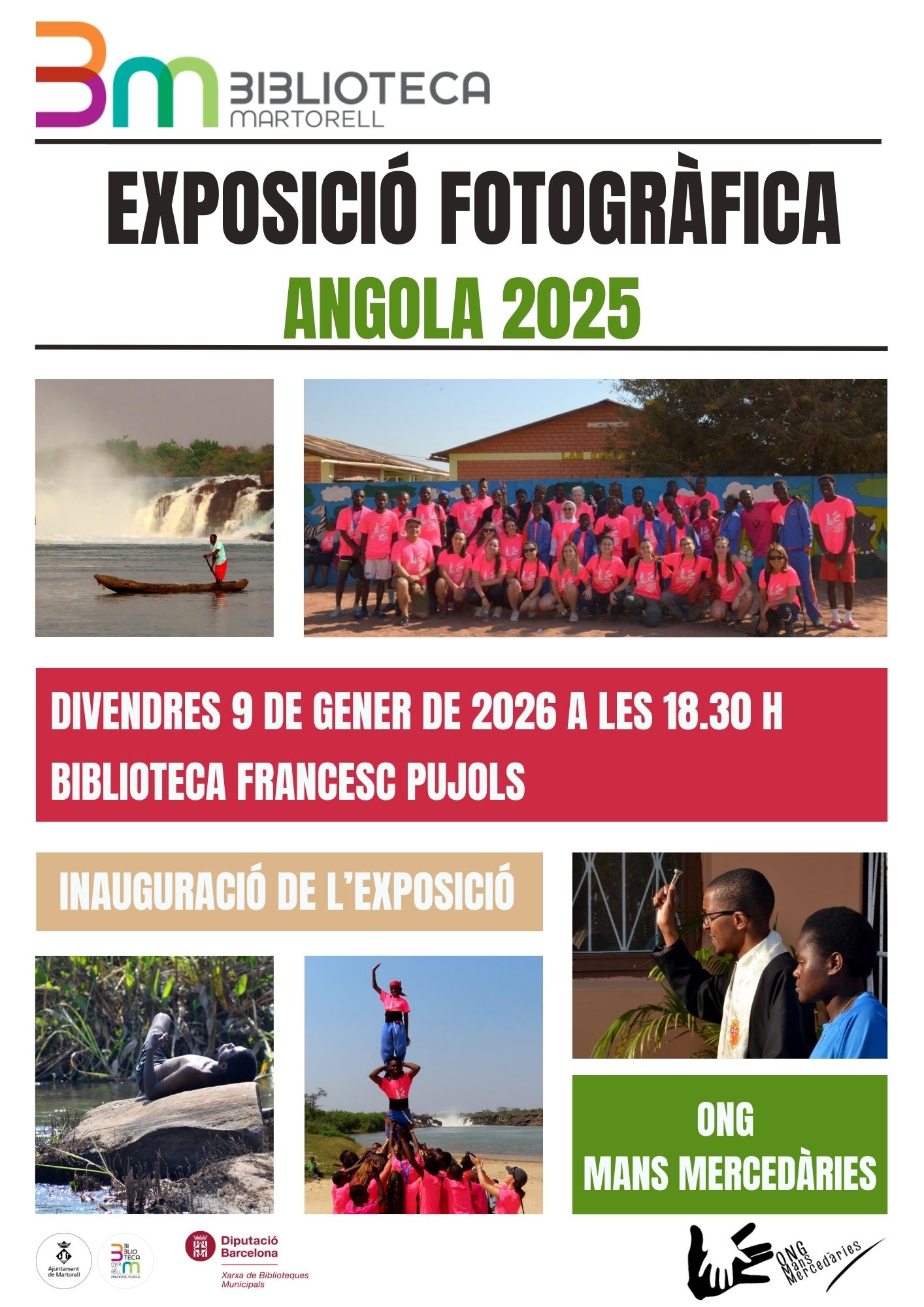 L’ONG Mans Mercedàries instal·la a la Biblioteca Francesc Pujols la mostra fotogràfica del 31è Camp de Treball dut a terme aquest estiu a Angola. Els voluntaris hi van ser del 6 de juliol al 5 d’agost per desenvolupar tasques solidàries. Una primera estada va ser a Vila Matilde, amb activitats educatives i de millora dels espais de l’Orfenat Kudielela, i una segona fase al barri de Bemfica, a Luanda, centrada en el treball amb infants i en la pintura i decoració de l’Escola Irma Palacios.