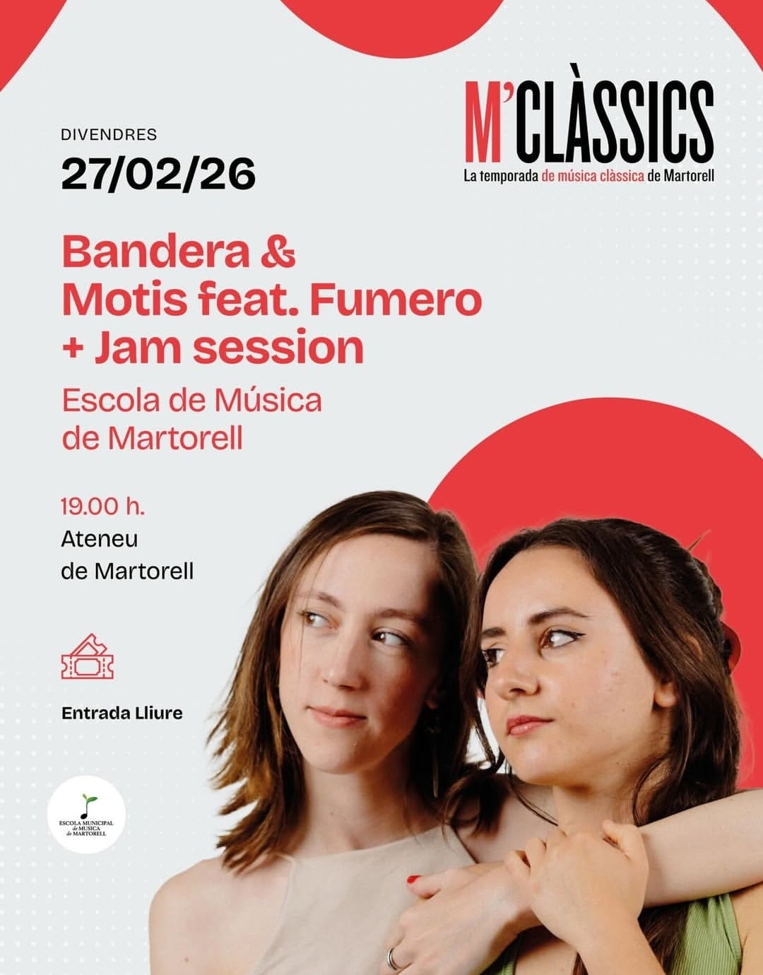 L’elegància i la sensibilitat són dues qualitats que caracteritzen les trobades entre la cantant Belén Bandera i la guitarrista Carla Motis, intèrprets de música subtil i hipnòtica. S’afegeix el contrabaixista Horacio Fumero, amb qui formen el trio Bandera & Motis feat. Fumero. El grup es va presentar per primera vegada al Festival de Jazz de Barcelona de 2021. També actuaran els alumnes de l’Escola Municipal de Música amb una “Jam Session”.