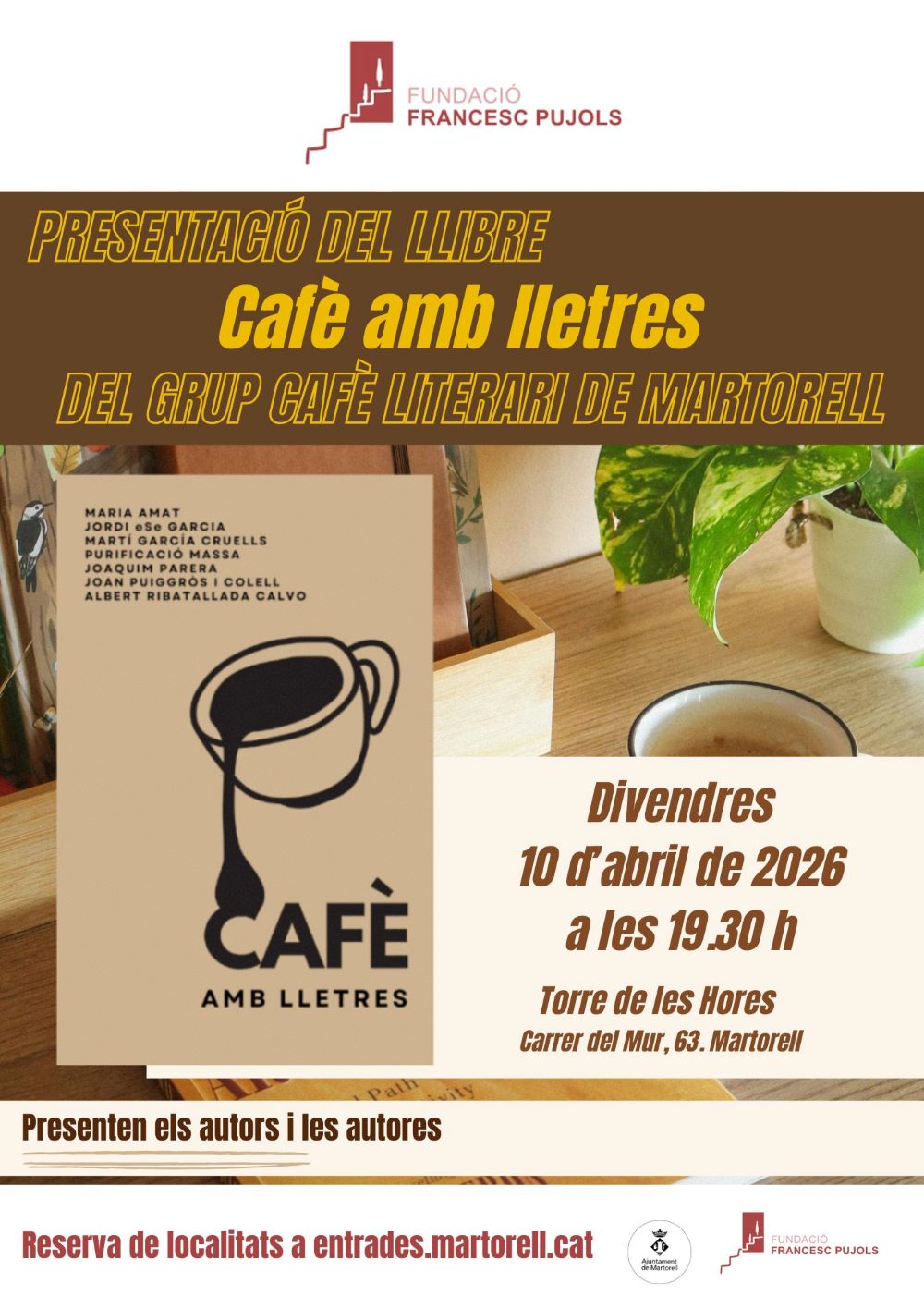 Presentació del llibre Cafè amb lletres del grup Cafè Literari de Martorell. L’obra recull les creacions literàries de set dels integrants d’aquest club d’autors, que es va constituir l’any 2023 i que es reuneix quinzenalment per compartir el gust per l’escriptura i la lectura. Una obra coral, que aglutina contes, microrelats, relats, cròniques i poesia.
