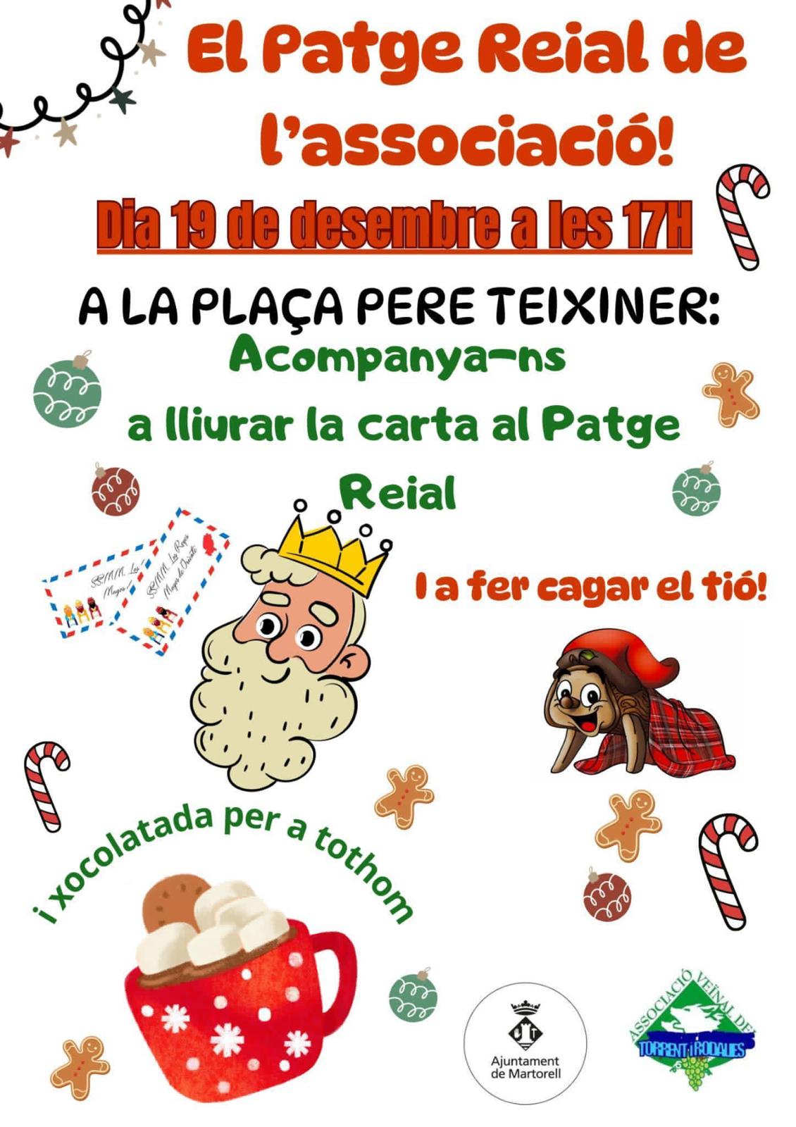 La Patgessa Reial i la seva ajudant recolliran les cartes dels petits i no tant petits, que faran arribar a ses Majestats els Reis d’Orient. A més es farà cagar el tió i es berenarà xocolata desfeta amb melindros.