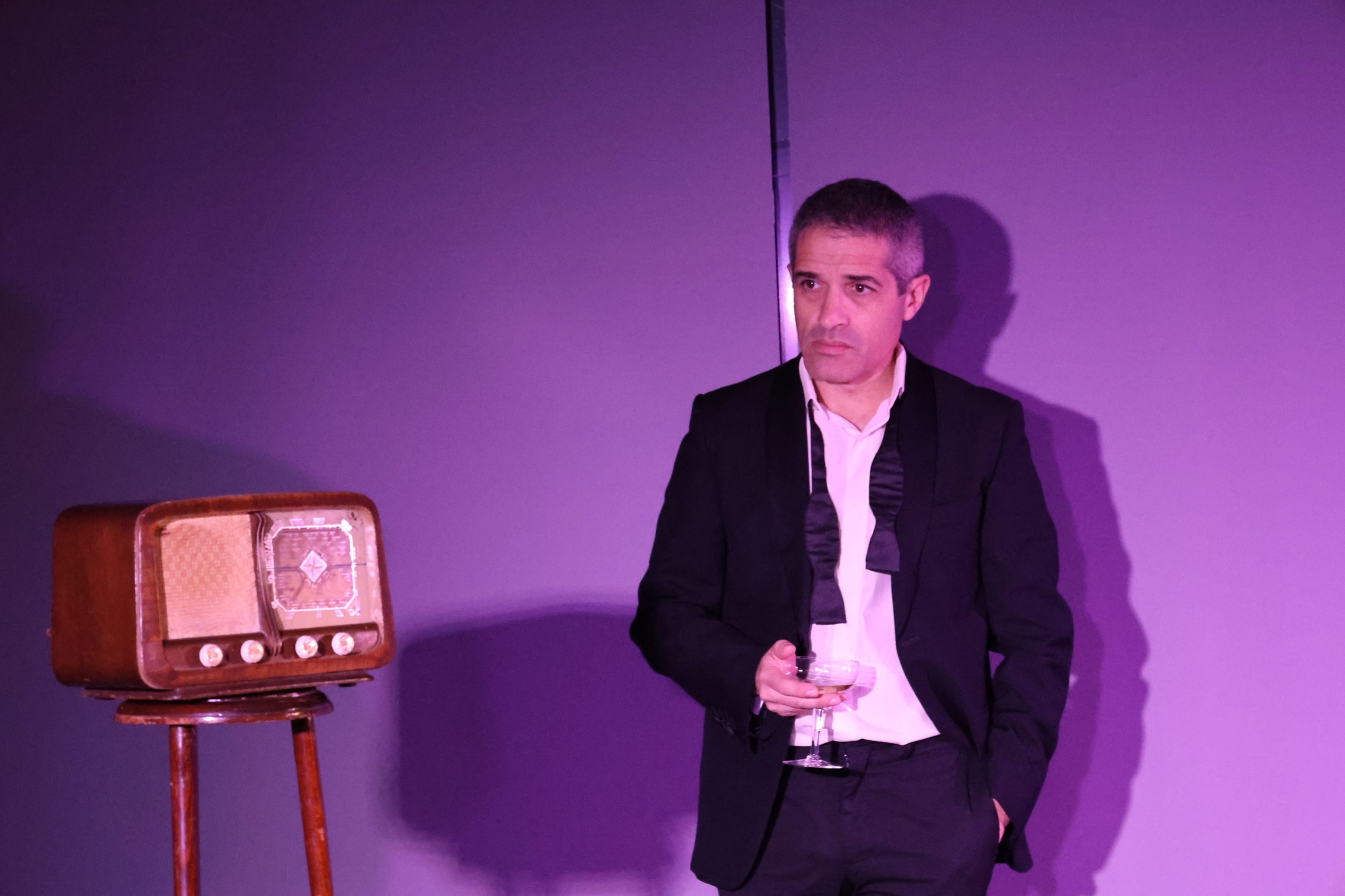 Sol a l’escenari, acompanyat per moments d’un so de tenora, Maymó ha recitat, de memòria al llarg d’una hora. Un muntatge de Jordi Lara que, com explica Maymó, enllaça de fet dues obres de Sagarra: El poema de Nadal i Vida privada, una altra de les grans creacions del dramaturg, que s’ambienta en una família de la burgesia barcelonina del segle XIX.
