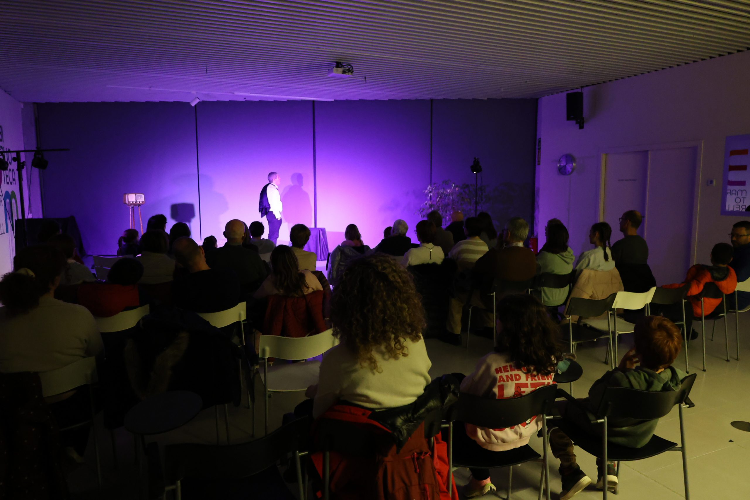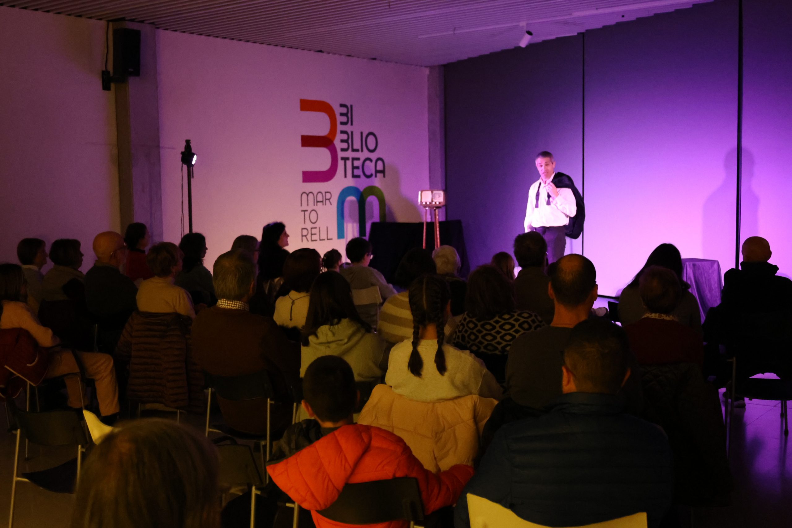 Aquest dilluns, l’actor Valentí Maymó i la companyia Bubulina Teatre han portat a la Biblioteca Francesc Pujols una representació de l’obra El poema de Nadal de Josep Maria de Sagarra. Una proposta teatral que, de fet, enllaça dues obres del dramaturg, ja que també hi incorpora Vida privada, i que pretén mostrar, d’una manera planera i senzilla, l’essència del Nadal. Una cinquantena de persones no se l’han perduda.