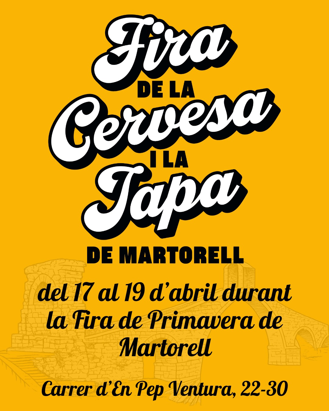 La rambla de Pep Ventura acollirà aquest cap de setmana la Fira de la Cervesa i la Tapa de Martorell, dins la Fira de Primavera. Cinc productors de cerveses artesanes de les comarques barcelonines i cinc restauradors de Martorell i rodalies oferiran tapes salades i dolces, amb acompanyament musical. La mostra obrirà el divendres 17 d’abril –de 17.00 a 00.00h-, dissabte 18 –d’11.00 a 00.00h- i diumenge 19 –d’11.00 a 15.00h-.