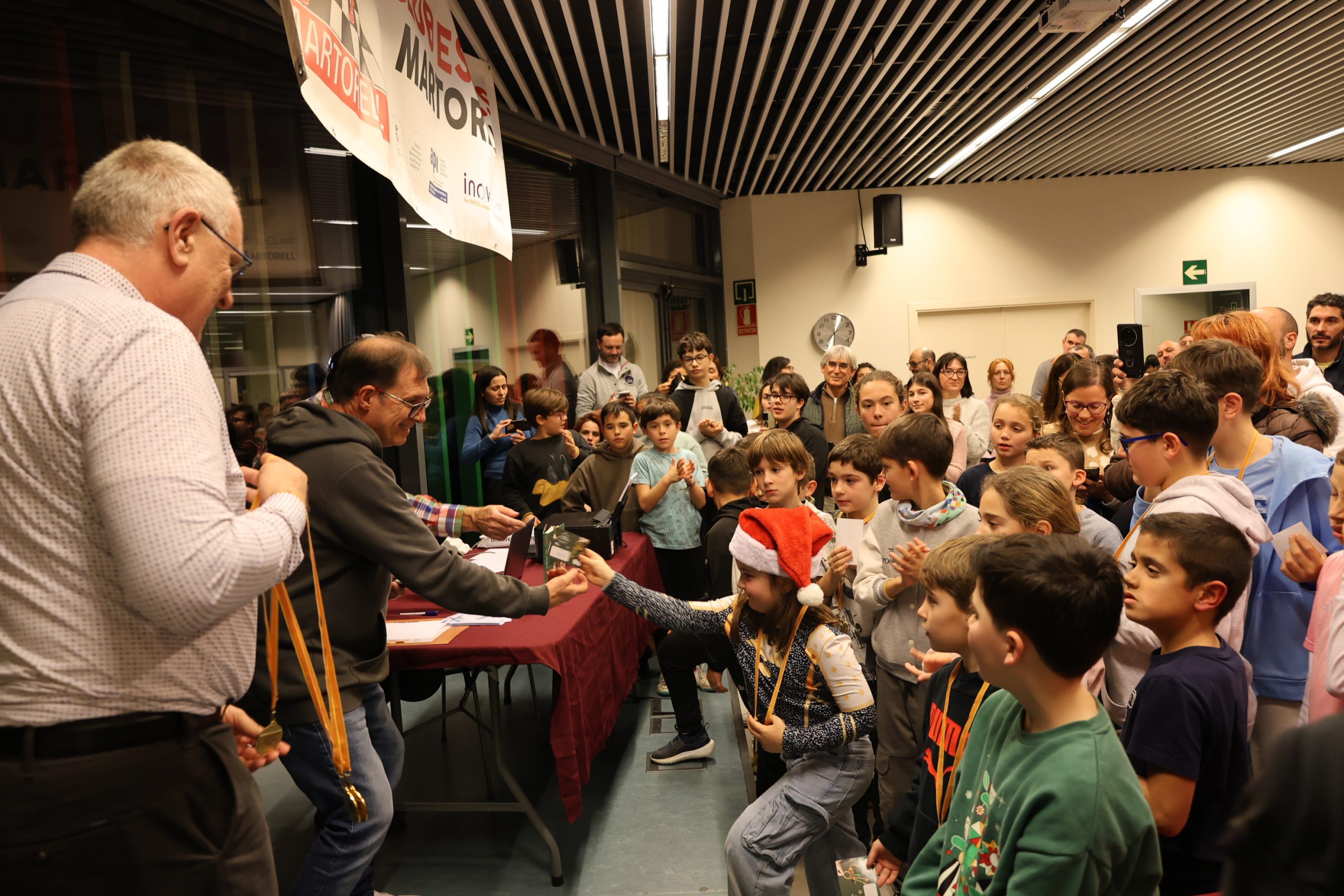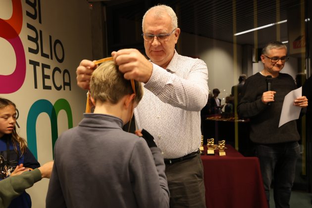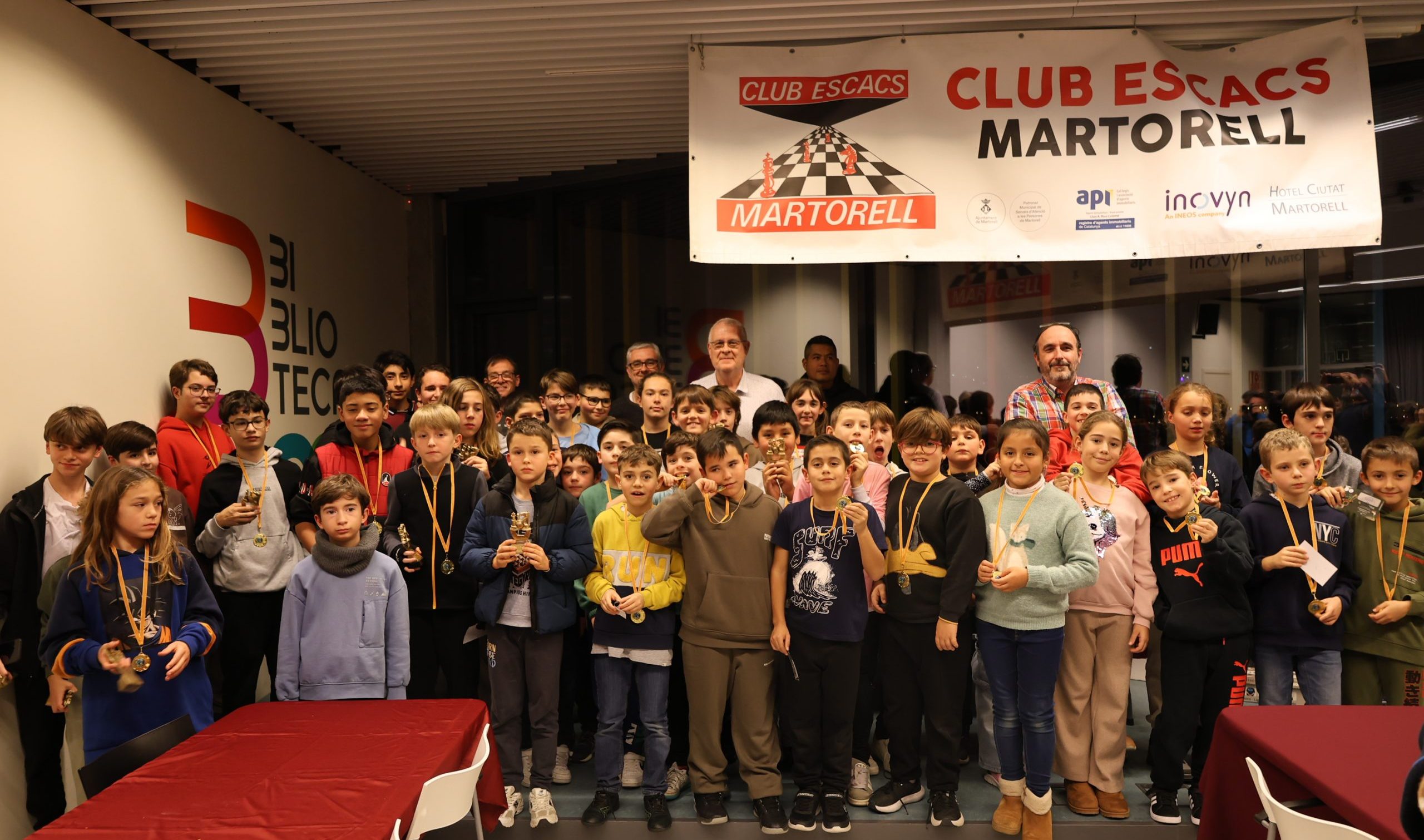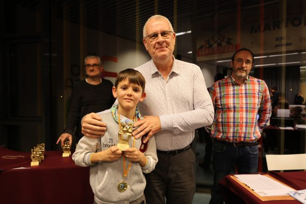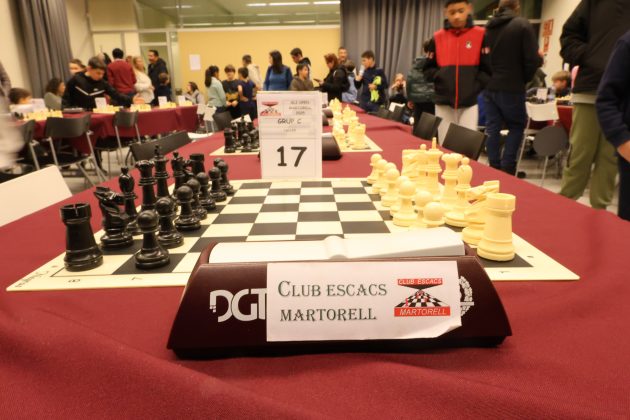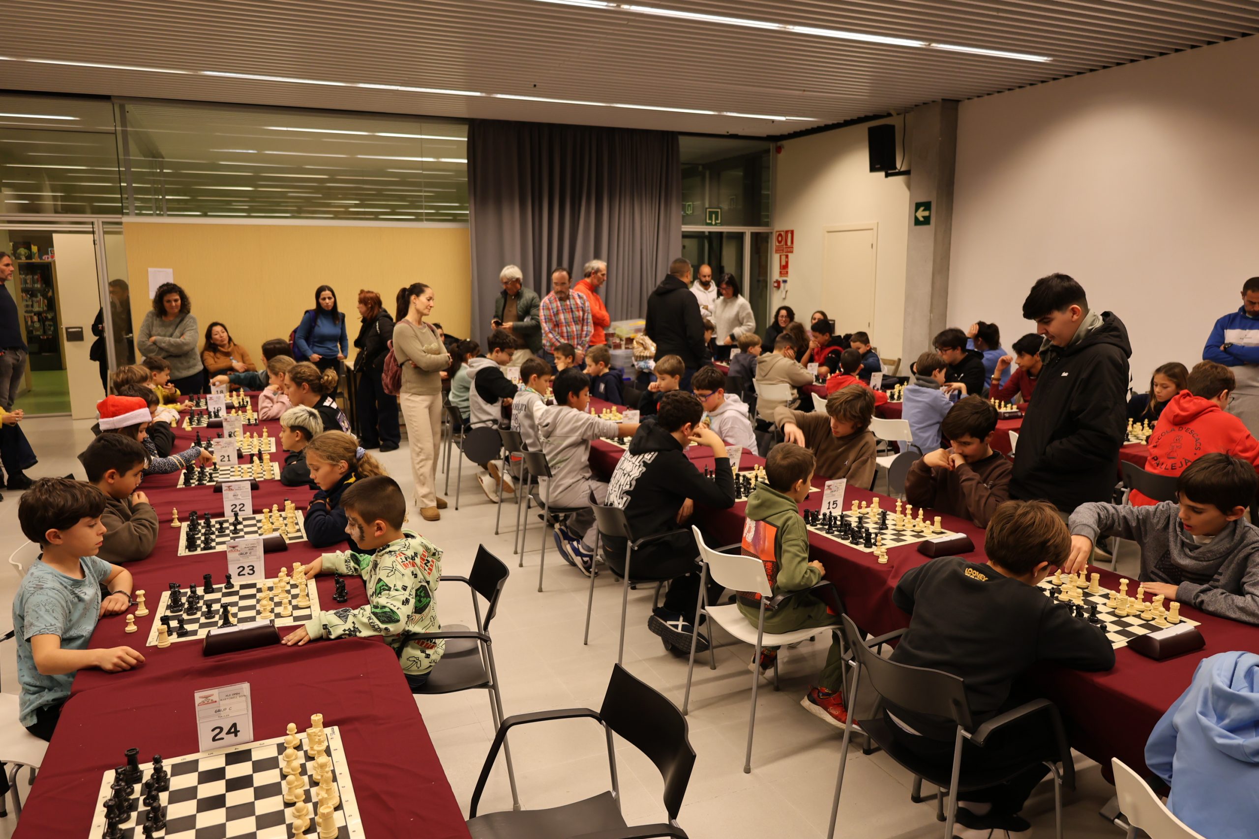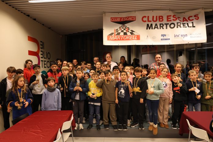 El Club d’Escacs Martorell i la Biblioteca Francesc Pujols han celebrat aquest vespre la primera edició del Torneig d’Escacs de la Biblioteca, per a nens i nenes d’entre 8 i 16 anys, en el que hi han participat 50 infants. La sala polivalent de l’equipament s’ha omplert de gom a gom de jugadors i familiars, en un certamen que pretén difondre aquest cèlebre joc mental i d’estratègia entre els més petits. El regidor d’Esports de l’Ajuntament, Gerard Mimó, ha lliurat els trofeus als guanyadors a les diferents categories, així com medalles i una entrada gratuïta per a la pista de gel, cedida per l’Ajuntament, a cada participant.