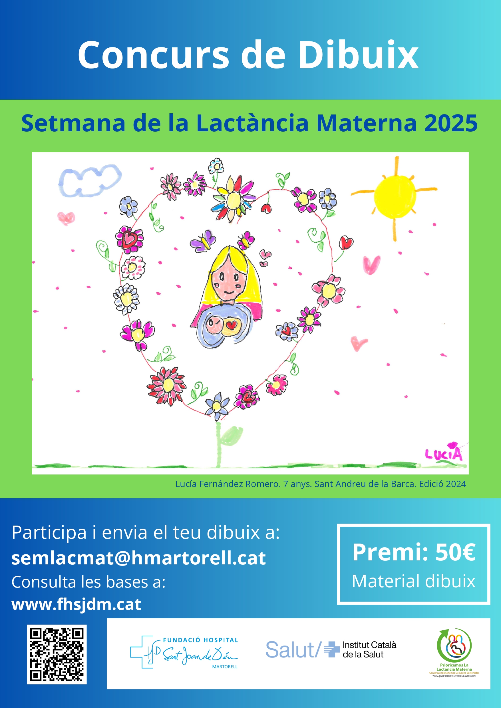 La Fundació Hospital Sant Joan de Déu de Martorell (FHSJDM) ha convocat una nova edició dels concursos de dibuix i fotografia en el marc de la 10a Setmana de la Lactància Materna, que se celebrarà del 20 al 24 d’octubre de 2025. Aquests certàmens tenen com a objectiu fomentar la creativitat i la reflexió al voltant de la lactància materna, una etapa clau per a la salut i el benestar dels nadons i les seves famílies.