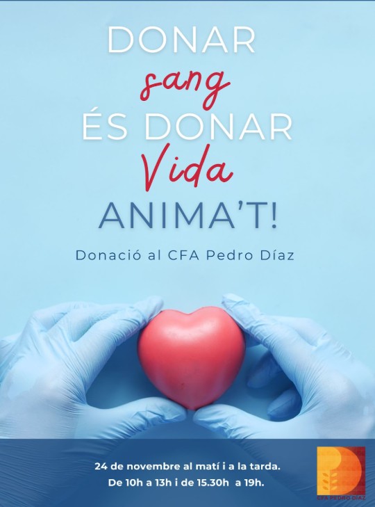 Gemma Parreño, responsable del CFA Pedro Díaz, subratlla el valor pedagògic de la iniciativa, tot afirmant que “cada curs, l’alumnat d’Instrumental 3 i 4 realitza un projecte de donació de sang. És una col·laboració amb el Banc de Sang i Teixits en què treballem el procediment i tota la campanya de difusió des de totes les àrees. Tot el projecte culmina amb la jornada de donació”. “Us animem a tots i totes a venir a donar sang”.