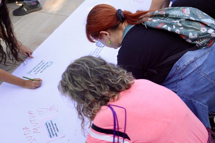 A continuació, s’ha fet un mural artístic entre tots els participants en defensa dels drets socials vinculats a la salut mental i s’hi ha llegit el manifest, amb la presència de la regidora de Serveis Socials i Mitjans de Comunicació, Cristina Dalmau, i la regidora de Gent Gran, Montse Salas.