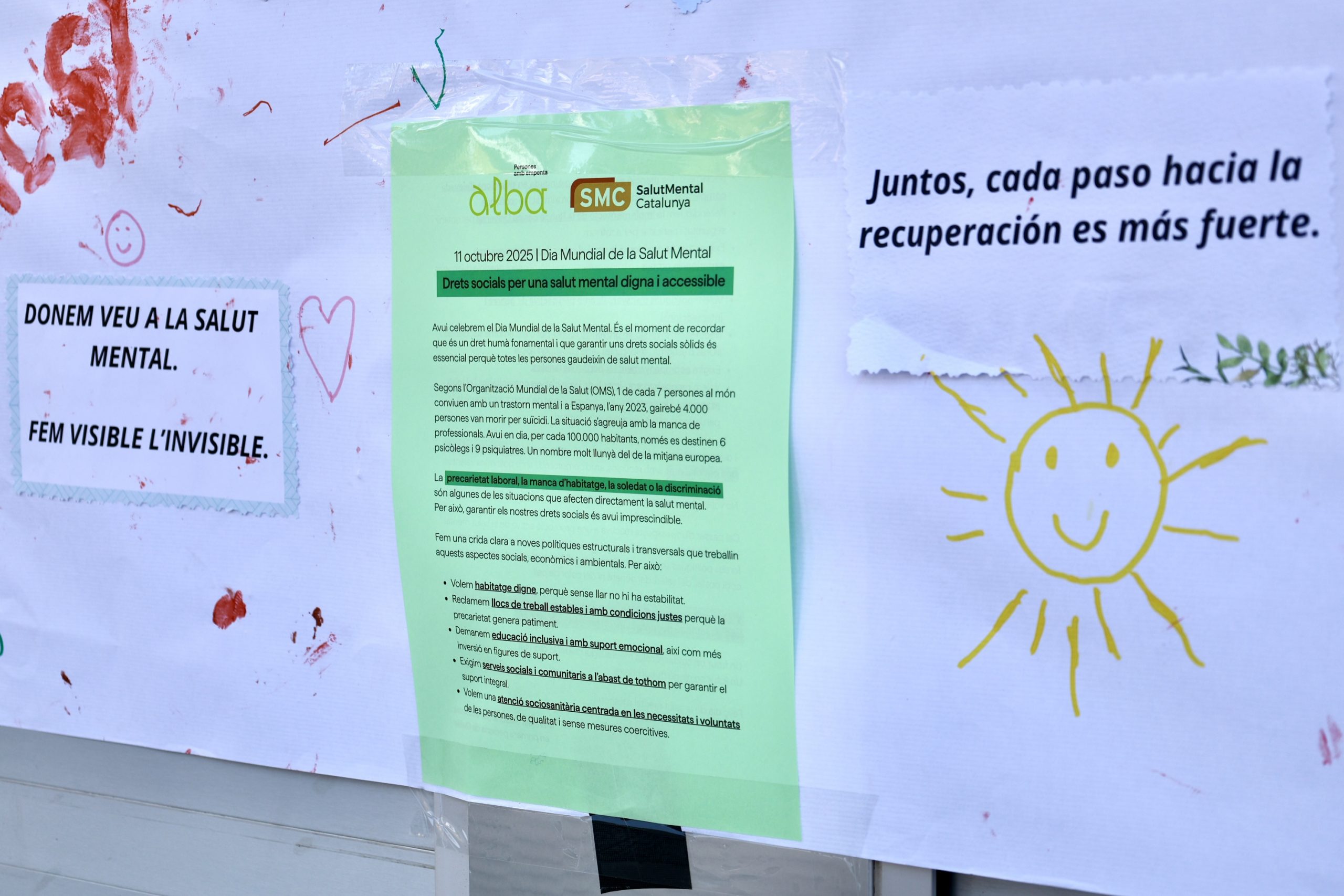 El manifest del Dia Mundial de la Salut Mental reivindica que la salut mental és un dret humà fonamental i depèn directament de garantir drets socials sòlids. Recorda que una gran part de la població viu amb trastorns mentals i que la manca de professionals i recursos adequats agreuja la situació, especialment en contextos de precarietat laboral, habitatge insuficient, soledat o discriminació. Així, es subratlla la necessitat de polítiques estructurals que abordin aquests factors socials, econòmics i ambientals per promoure una salut mental digna i accessible.