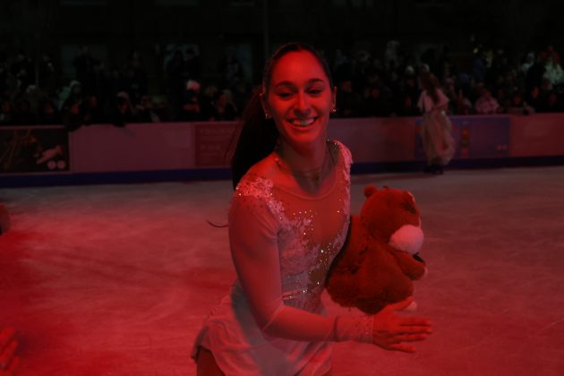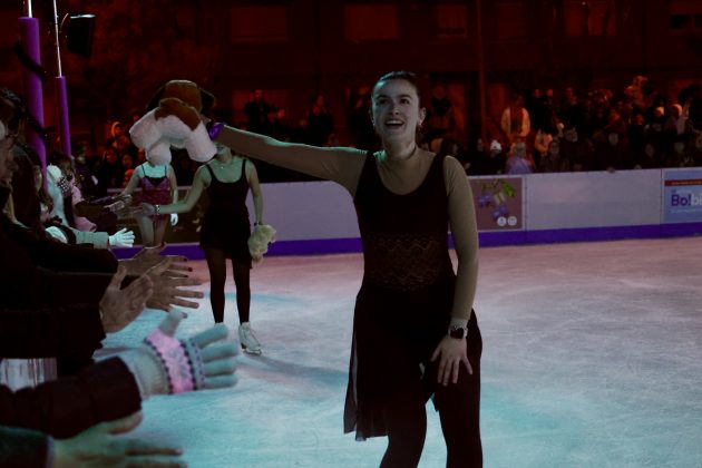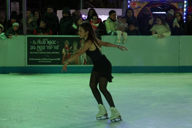Per acabar, tota la comitiva s’ha dirigit fins a la Pista de Gel, instal·lada a la plaça de Pere Teixiné, per tal d’inaugurar-la. Allà hi ha hagut una exhibició a càrrec de patinadores del Futbol Club Barcelona i de la mateixa Fada Estel, que les ha acompanyat.