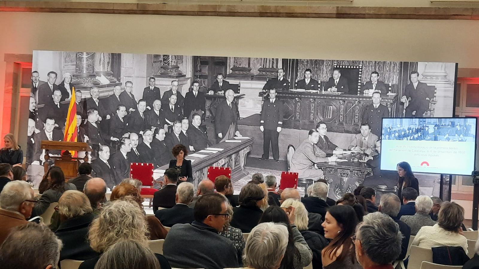 Un dels moments destacats va ser la projecció d’un vídeo sobre aquella primera sessió de la cambra, sorgida de les eleccions del 20 de novembre de 1932, amb el discurs inaugural del president Francesc Macià. L’audiovisual també recreava el discurs de Lluís Companys –doblat per l’actor Carles Martínez-, tant d’aquell dia com del 13 de desembre, quan es va ratificar la Mesa del Parlament. En la seva intervenció, Companys parlava del ressorgiment de la cambra “després d’un col·lapse de prop de dos segles”.