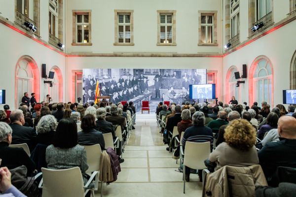 Un dels moments destacats va ser la projecció d’un vídeo sobre aquella primera sessió de la cambra, sorgida de les eleccions del 20 de novembre de 1932, amb el discurs inaugural del president Francesc Macià. L’audiovisual també recreava el discurs de Lluís Companys –doblat per l’actor Carles Martínez-, tant d’aquell dia com del 13 de desembre, quan es va ratificar la Mesa del Parlament. En la seva intervenció, Companys parlava del ressorgiment de la cambra “després d’un col·lapse de prop de dos segles”.