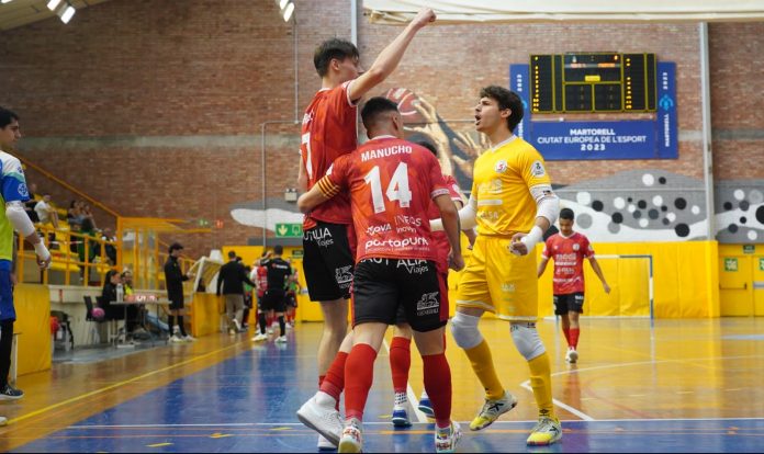 El primer equip del Sala 5 Martorell va aconseguir dissabte una victòria de gran valor per apropar-se a la permanència a la Segona Divisió. Els vermells van superar per 2-1 el Zambú CFS Pinatar, quart classificat, en un duel molt exigent que es va decidir amb els gols d’Arnau Graell i Akim Ràfols, que van permetre capgirar el marcador davant l’afició martorellenca.