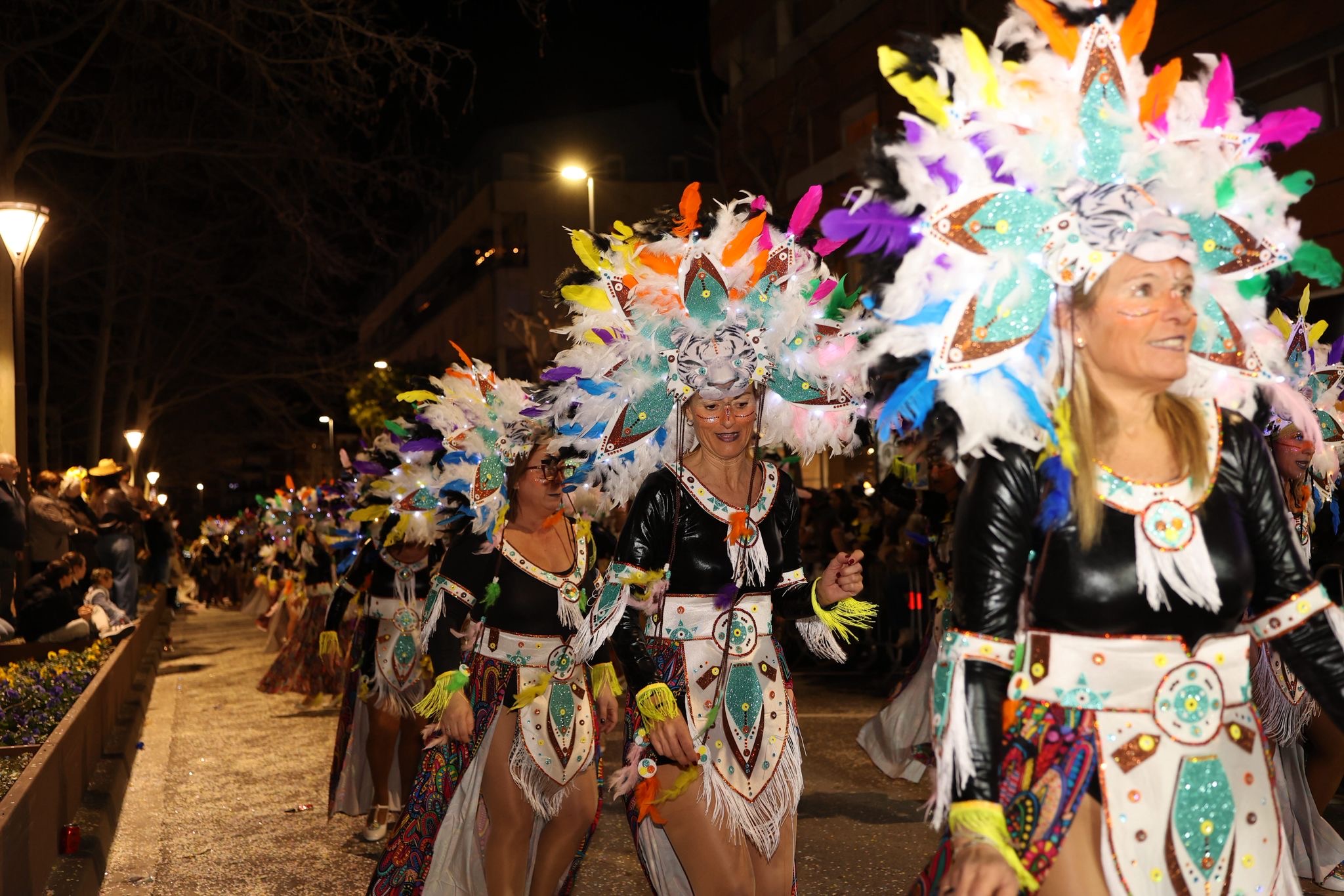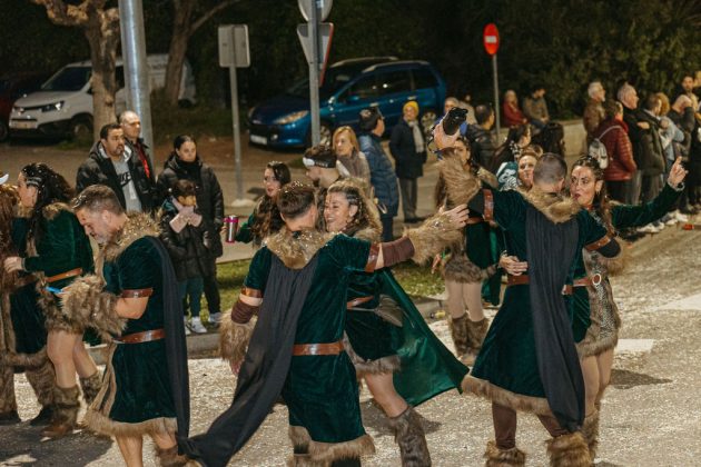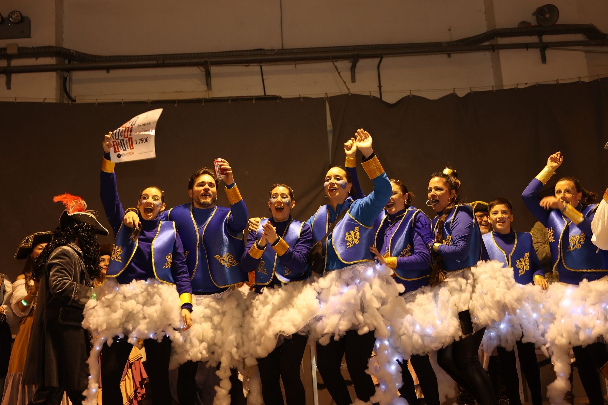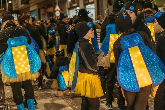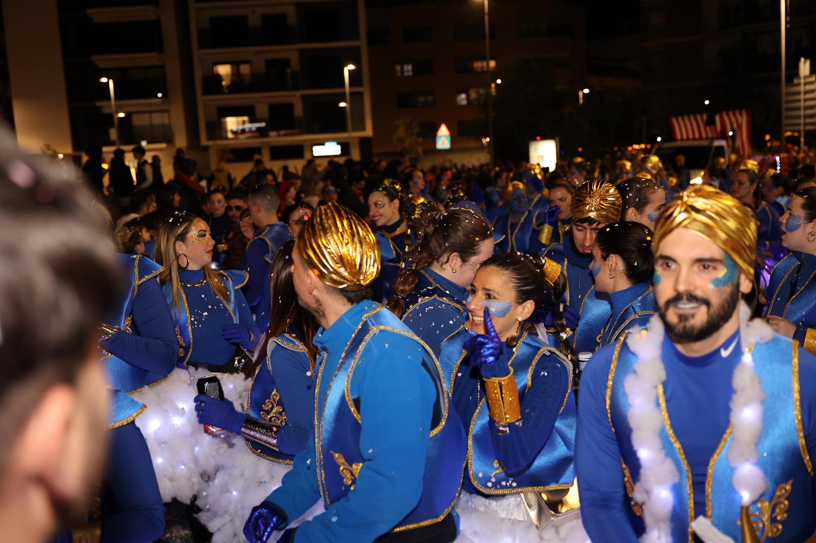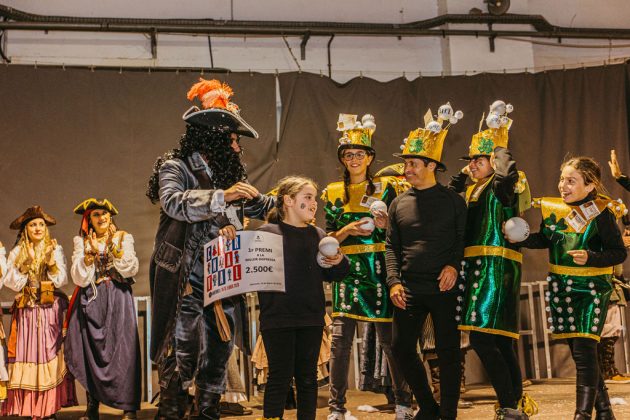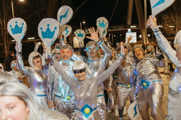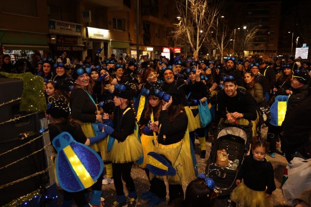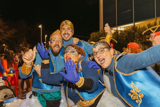 La segona posició, premiada amb 1.750 euros, ha estat per a la colla ‘Wontanara’, que ha transformat els seus 130 membres en genis sortits de la làmpada d’Aladí, amb tons blaus intensos, detalls daurats i volums eteris que evocaven el fum màgic. La membre de la colla, Irene Albarracín, ha valorat molt positivament el resultat: “Per nosaltres és molt important aquesta segona posició perquè fa quatre anys que participem com a entitat social. Part del premi el podrem utilitzar per a l’entitat i l’altra part per millorar la disfressa. No ens ho esperàvem per res del món, estem molt, molt contentes i orgulloses”.