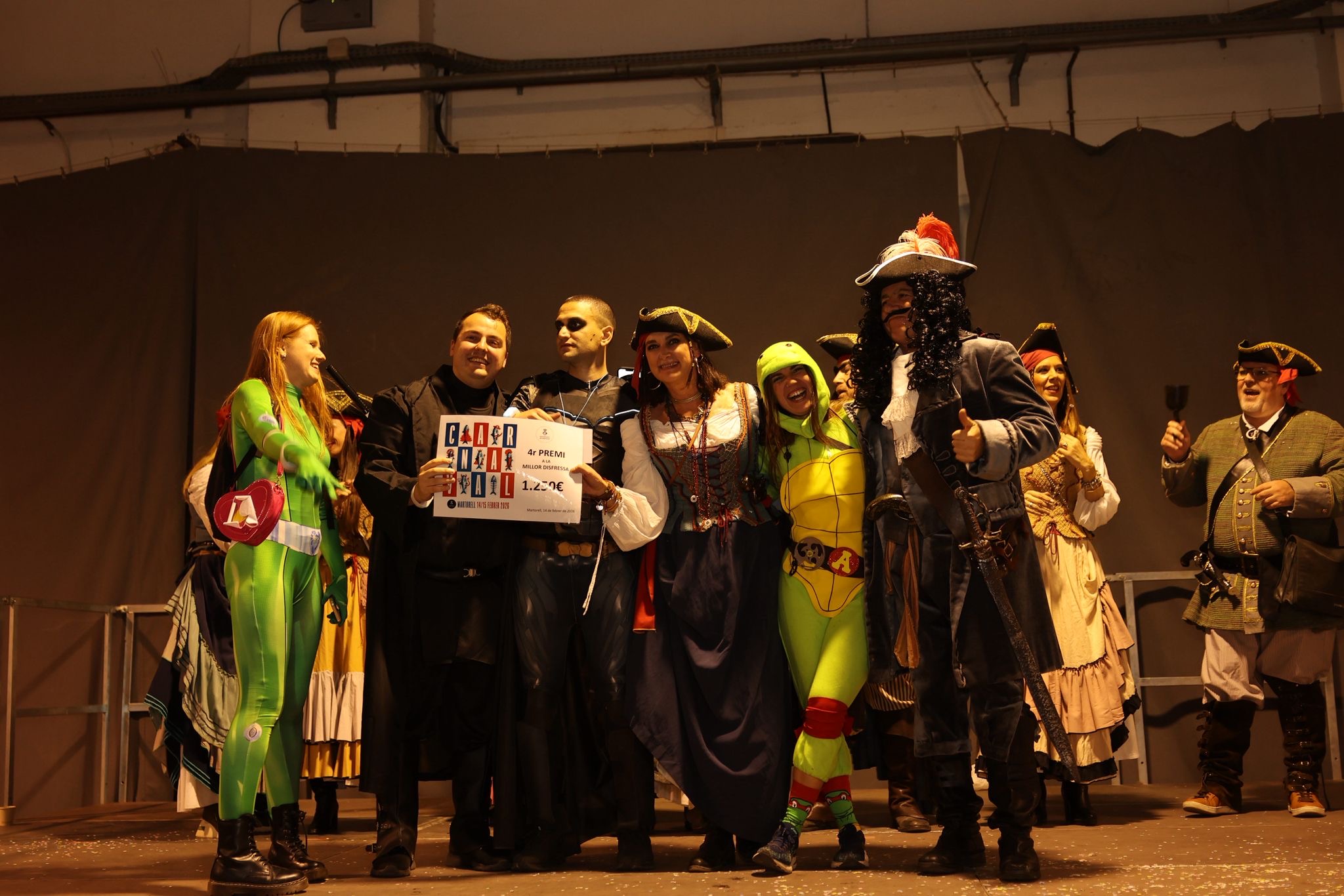El Carnaval de Martorell 2026 ha tornat a coronar, per segon any consecutiu, la colla ‘Gegants de Martorell’ amb el primer premi a la millor disfressa del 17è Concurs de Comparses i Disfresses. La seva proposta, inspirada en el sorteig de la Loteria de Nadal, ha captivat el jurat amb una vistosa indumentària de tons verds i daurats, barrets ornamentats amb números premiats i trèvols de la sort, recreant l’imaginari de l’atzar i la fortuna.