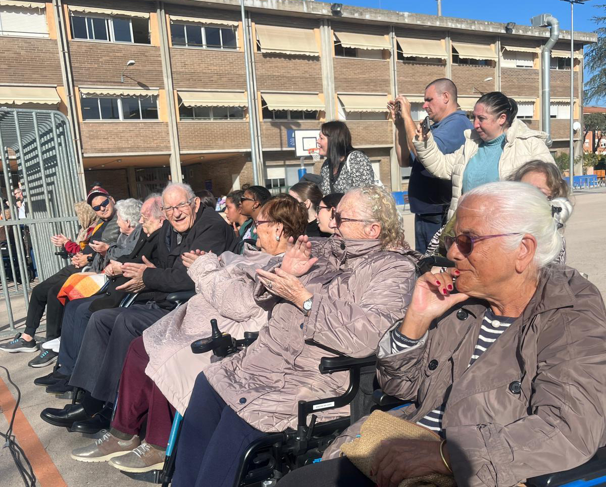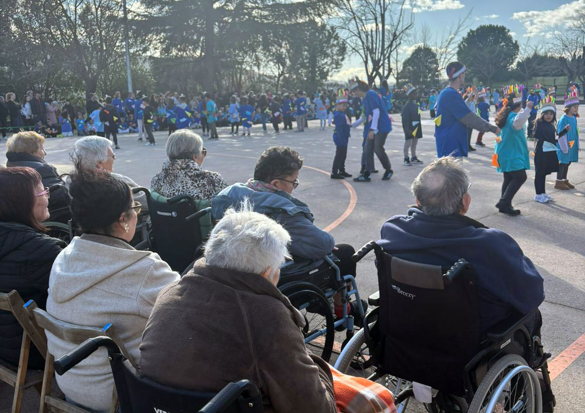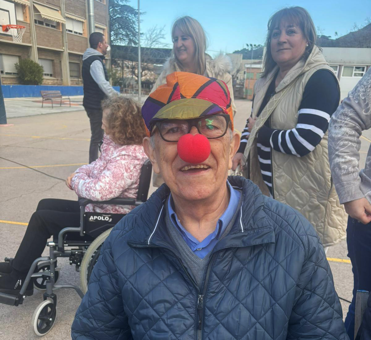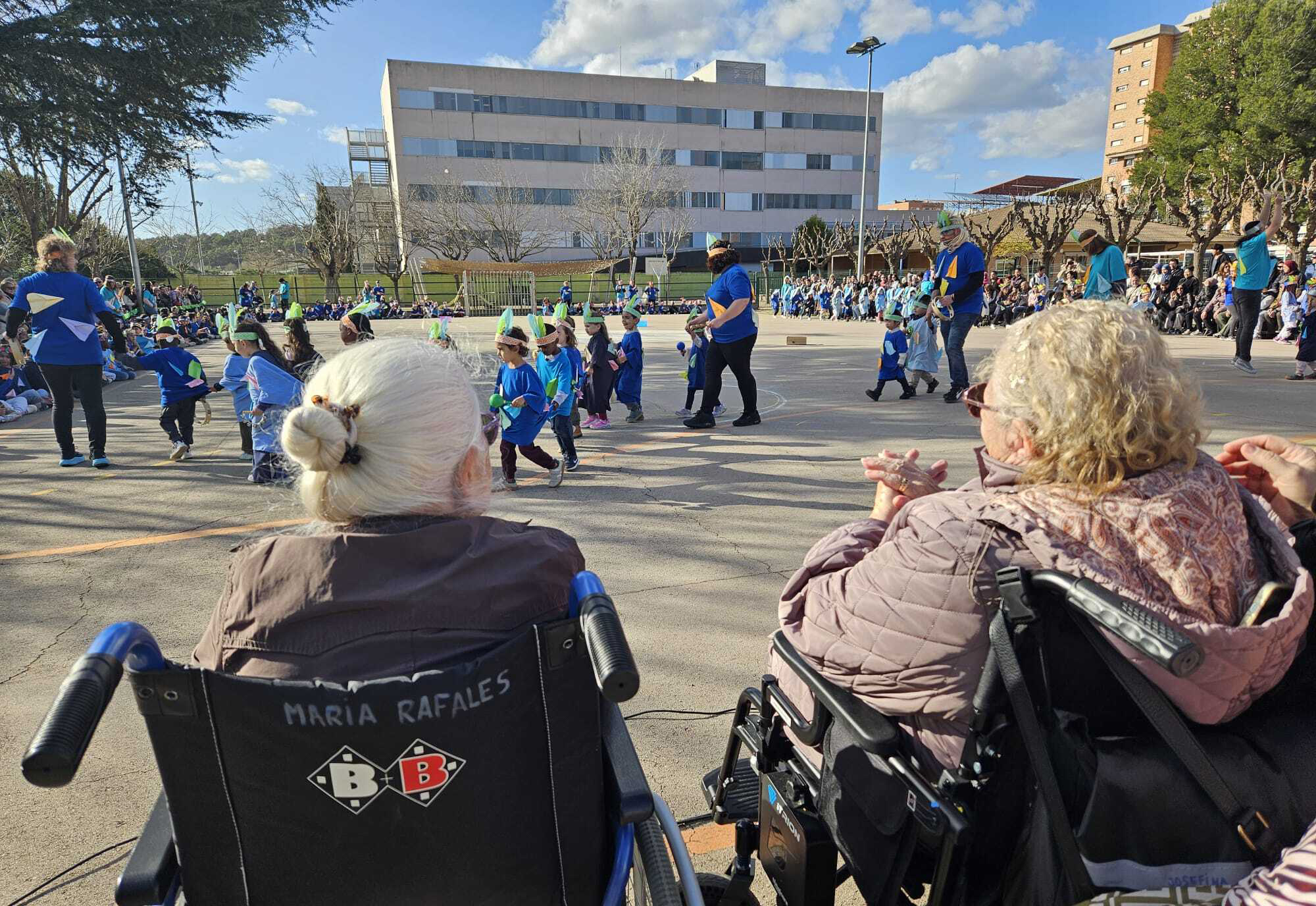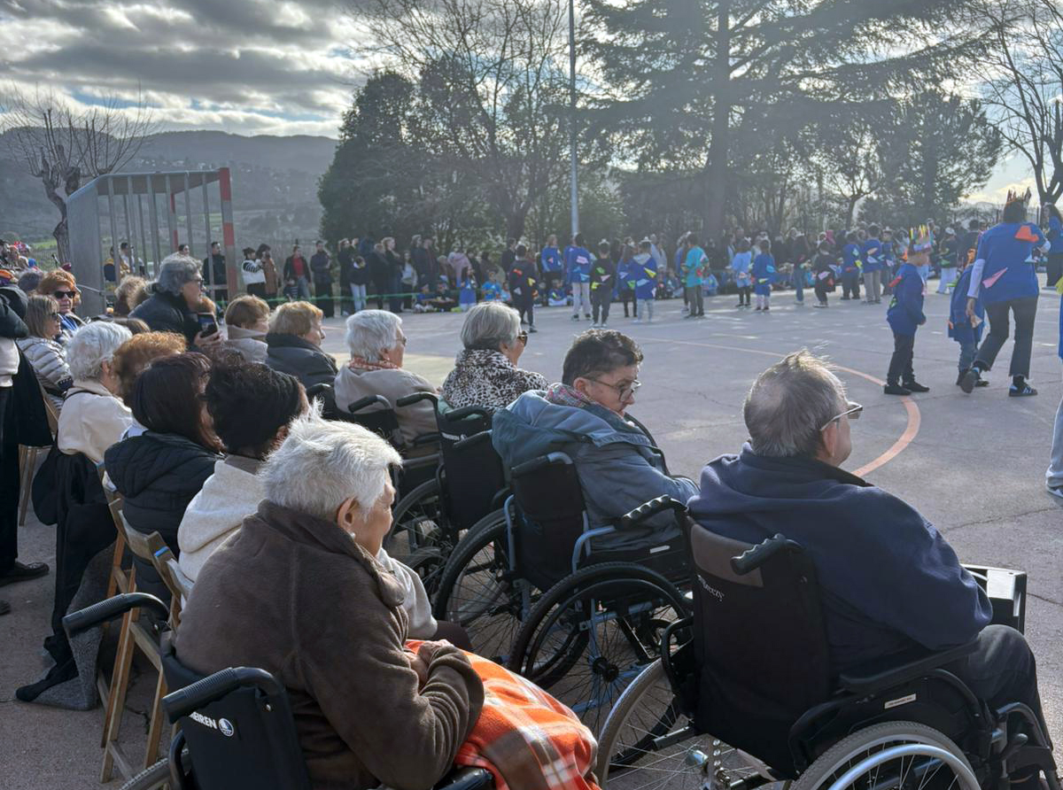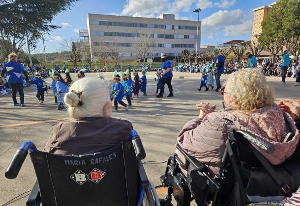 Un total de 27 usuaris de la Residència es van desplaçar dimarts fins a l’Escola Vicente Aleixandre “per passar la tarda amb els alumnes d’aquest centre i veure la seva rua de Carnaval”, explica l’educadora social de la Residència Sant Joan de Déu, Mònica Salgado.