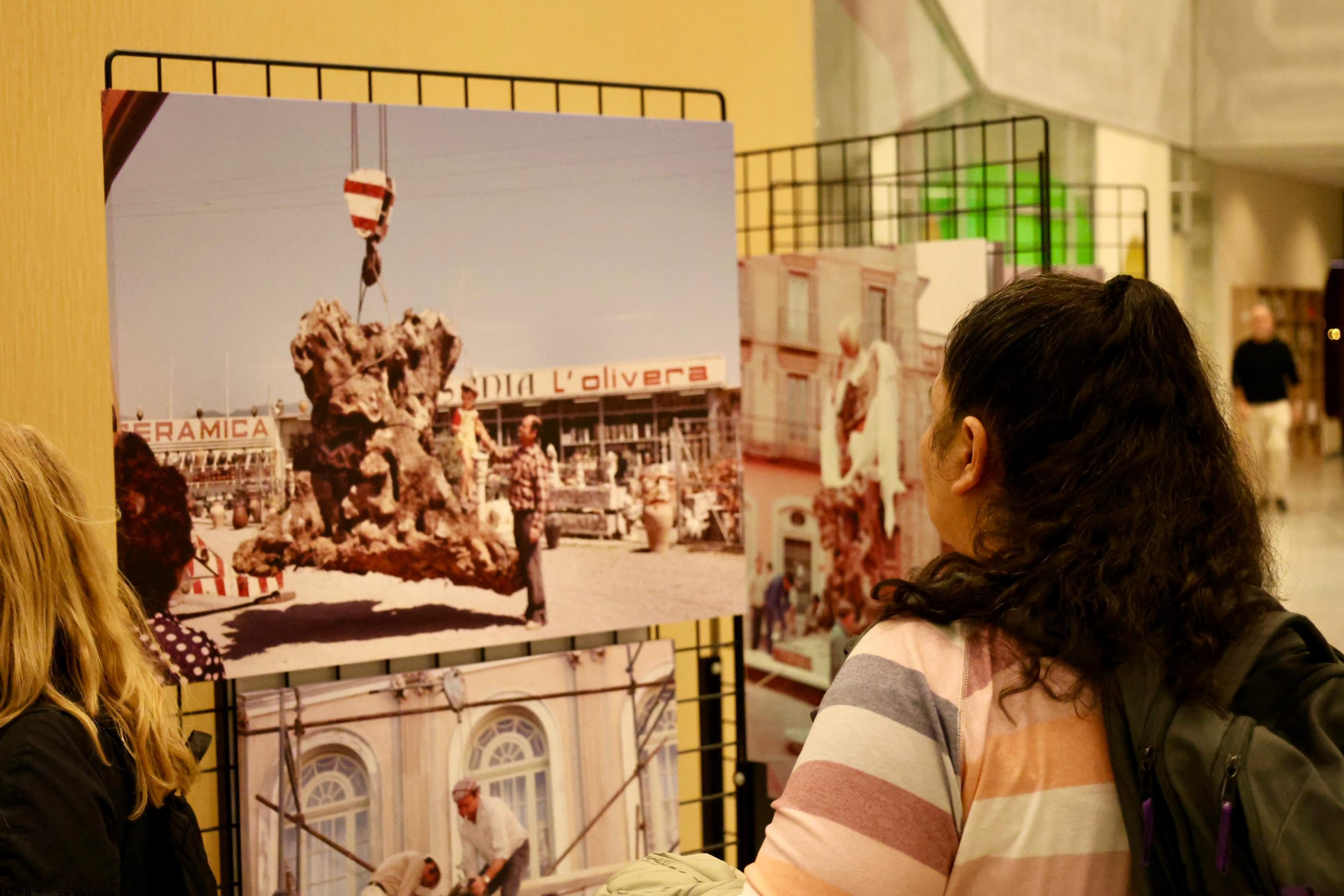 A més de les fotografies que mostren el procés de construcció del monument, s’hi poden veure imatges d’un film rodat l’any 1956, i que mostra una trobada entre Dalí i Pujols a la Torre de les Hores. “És una pel·lícula que es va descobrir fa uns anys. Era muda, però hi hem incorporat una transcripció feta per Pau Torra sobre tot allò que ell mateix recordava de la conversa entre els dos protagonistes”.