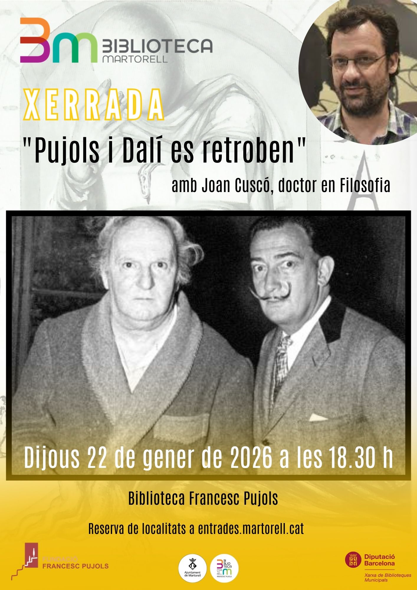 La filosofia també serà present a la Biblioteca, amb la xerrada ‘Pujols i Dalí es retroben’, el dijous 22 de gener (18.30h) i amb Joan Cuscó, doctor en Filosofia. Una sessió per evidenciar que, per a Dalí, “Francesc Pujols era, és i serà l’emperador trajà de la filosofia. Una bona ocasió per saber alguns secrets més d’aquesta relació entre l’artista i el filòsof de la Torre de les Hores”, com descriu Josefina Canals.