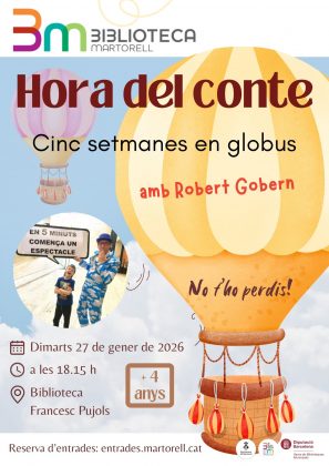 Abans de tancar el mes, la Biblioteca acollirà dues activitats més: el dissabte 24 (d’11.30 a 13.00h) el Taller d’escacs per a totes les edats amb el Club d’Escacs Martorell. I el dimarts 27 (18.15h) l’Hora del Conte amb Cinc setmanes en globus, amb l’actor Robert Gobern, per a nens i nenes a partir de 4 anys, per posar-los en la imaginativa ment de Jules Verne en crear la novel·la del mateix nom.