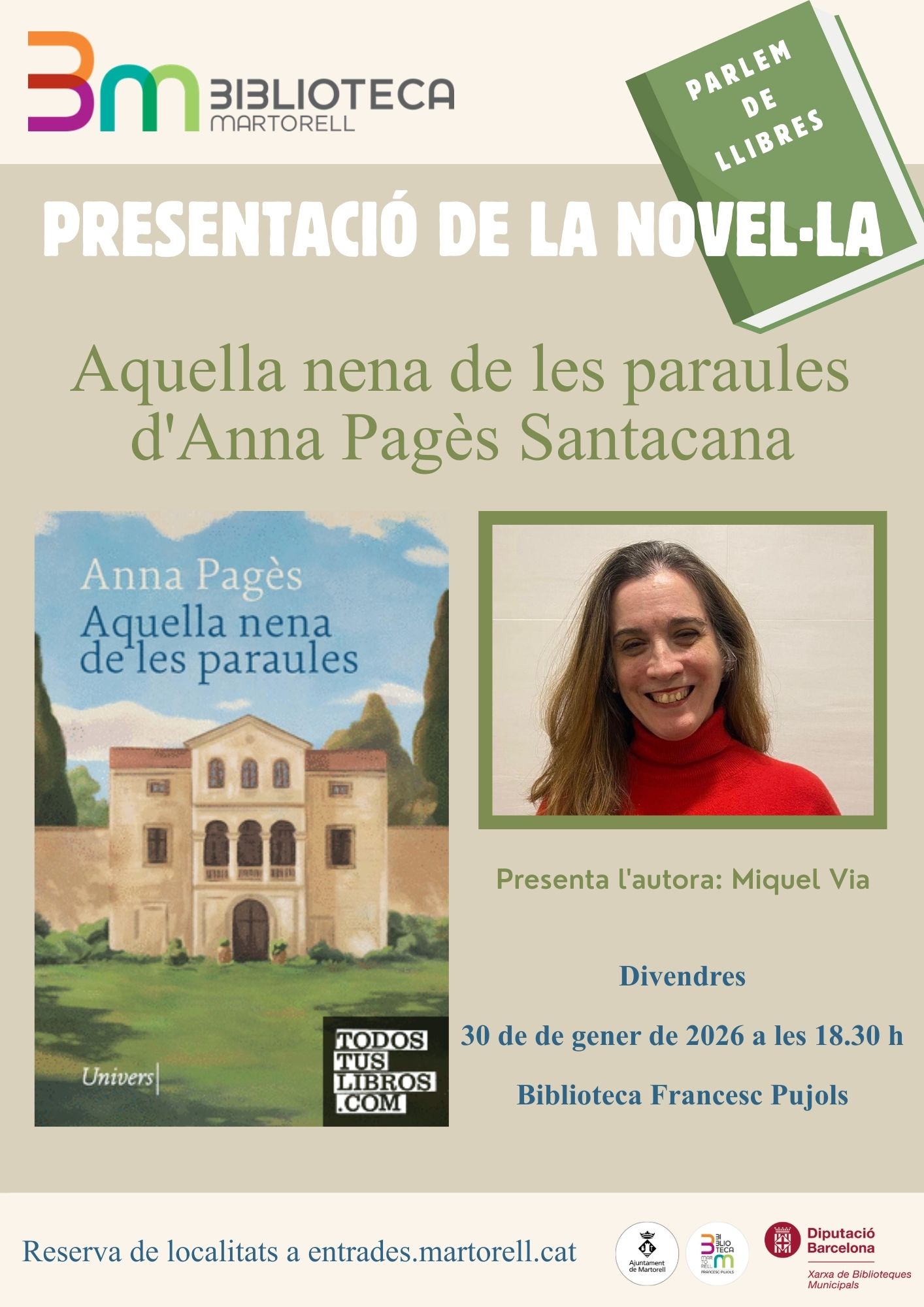 Coincidint amb l’efemèride dels 150 anys del Museu de l’Enrajolada, la Biblioteca Francesc Pujols presentarà aquest gener el llibre Aquella nena de les paraules, escrita per una de les integrants de la família, l’Anna Pagès Santacana. Serà el proper 30 de gener, a les 18.30h, i clourà un gener on l’equipament cultural també albergarà tallers, conta-contes, jocs i cinema familiar, exposicions, xerrades sobre Dalí i Pujols. La martorellenca Tamara Rivera presentarà un llibre relacionat amb la temàtica del tarot i l’astrologia.