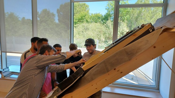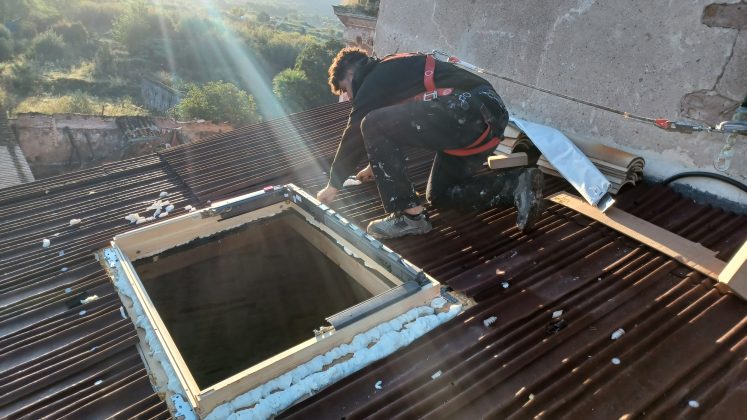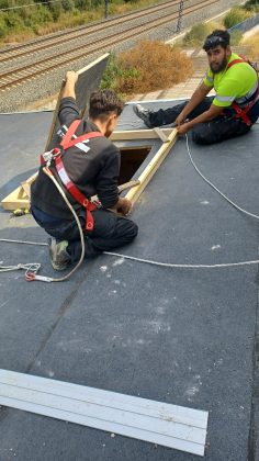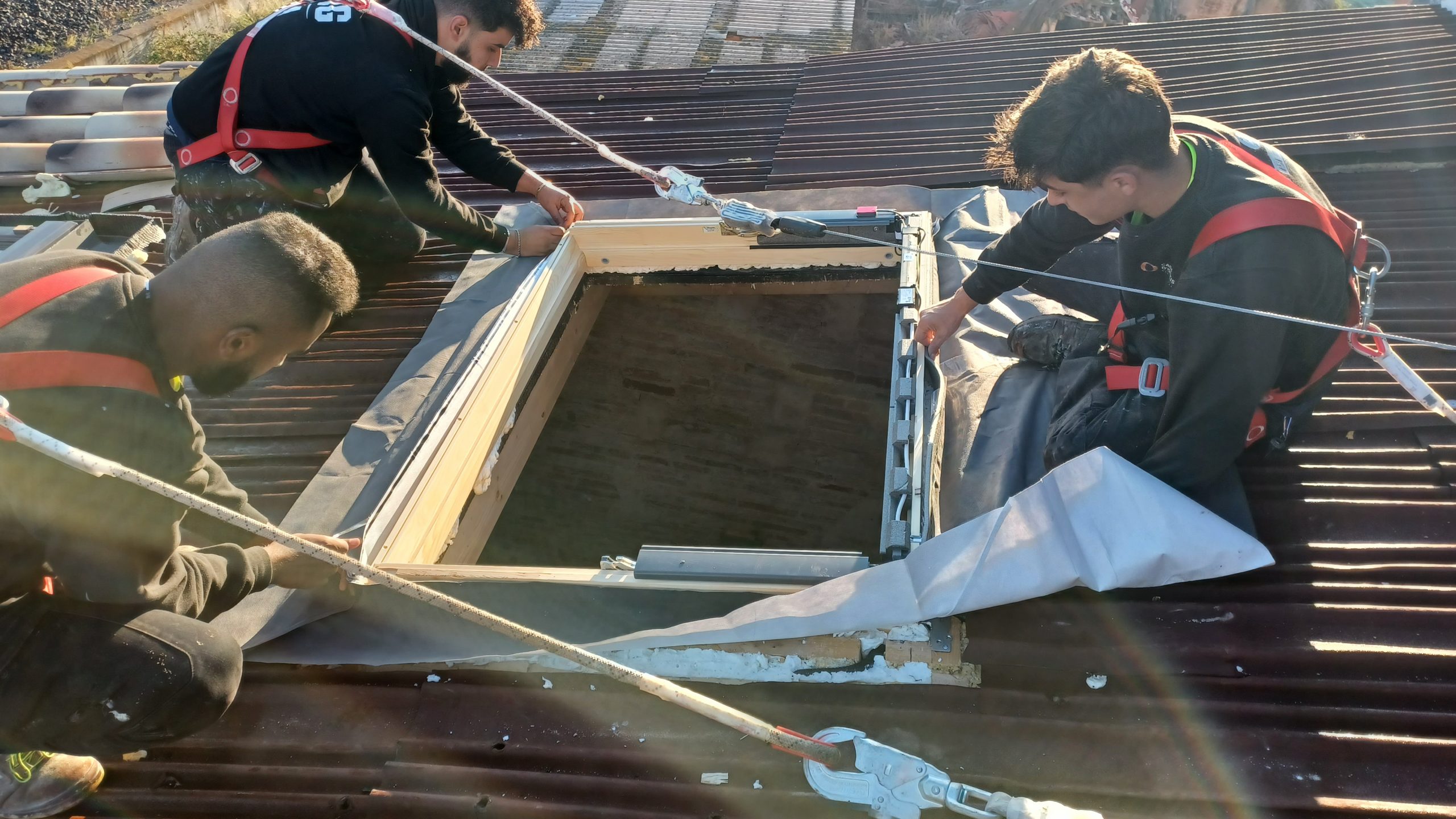 A la Torre de Santa Llúcia, alumnes i professorat han treballat sobre la coberta nord, reconstruïda en la fase 0 de rehabilitació de l’edifici, i el cos de Sitges de l’edifici, tot col·locant un sistema d’impermeabilització i teules, Onduline i bastiments de base per a finestres de coberta. Per as aquesta tasca, han establert una col·laboració amb l’empresa Velux, que ha format els alumnes en la col·locació d’aquestes finestres, a través d’un curs de vuit hores a les seves instal·lacions, que ha fet una demostració prèvia a la instal·lació i que s’ha ofert a futures col·laboracions en el projecte i a seguir formant algún dels joves que vulgui professionalitzar-se com a col·locador.