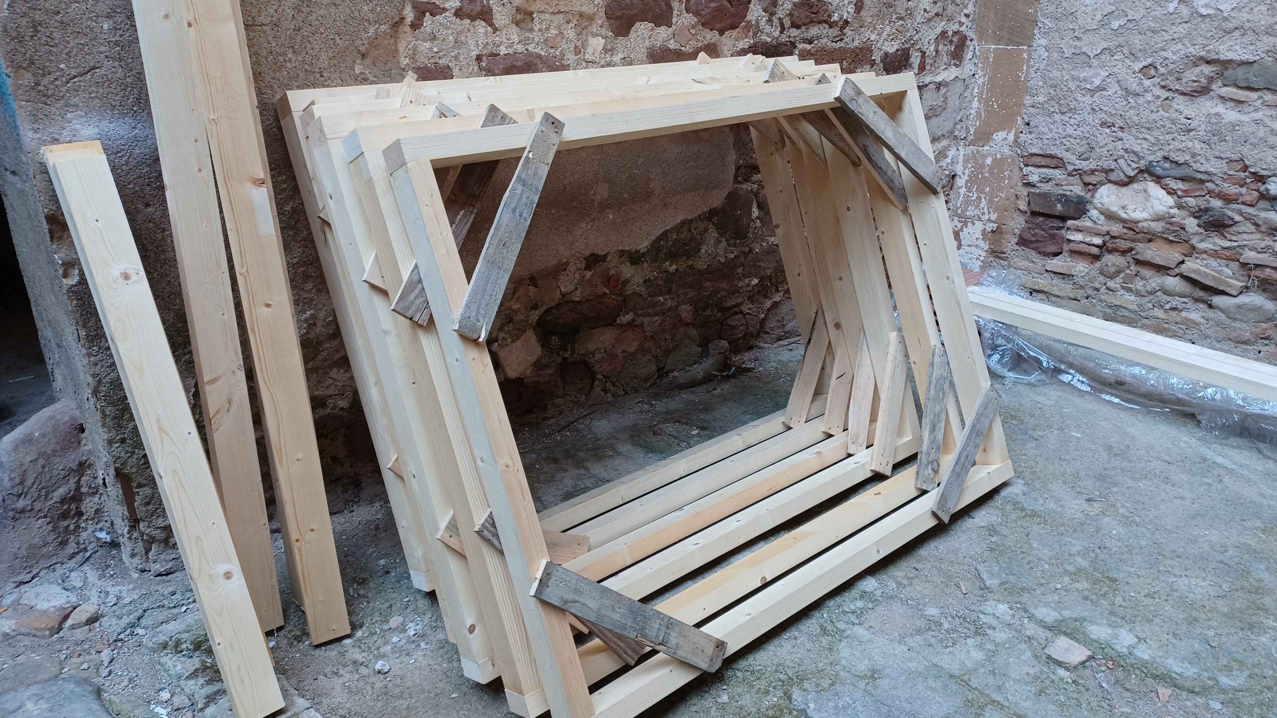 Escola Lola Anglada: tractament de fusta de la canòpia, que és la que s’ha fet reutilitzant pilars i bigues del Mercat. Extracció dels desperfectes a la porta, donant imprimació i pintant les portes de les escomeses.