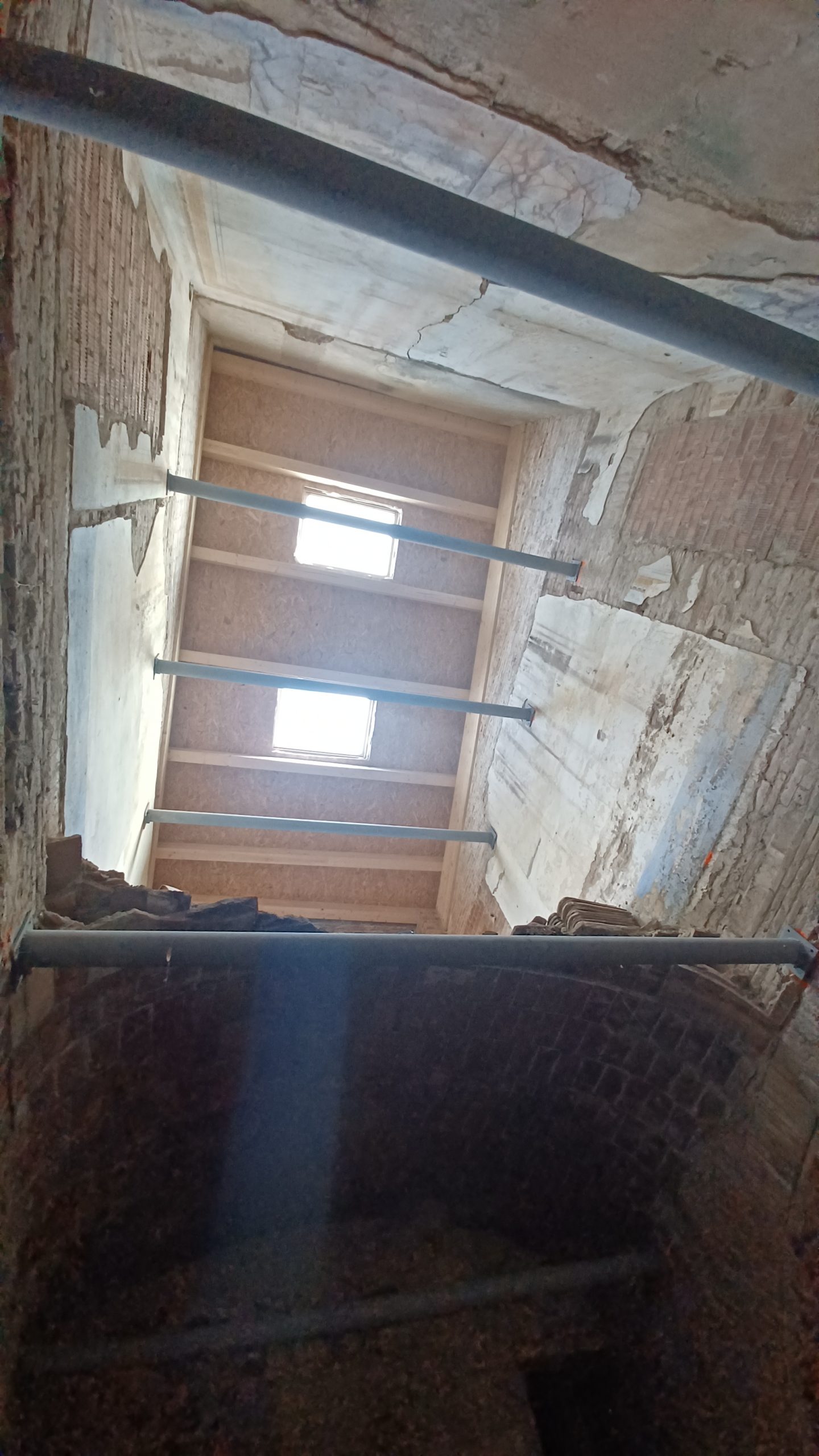 A més, s’ha netejat i contingut la vegetació al pati interior i al perímetre de l’edifici, repicat de revestiments i fet el rejuntat d’obra vista a la zona de les cavallerisses i a algun espai de planta baixa. També s’han fet cales per a l’estudi estructural que gestiona la Diputació de Barcelona -tant a terreny per veure com recolza l’edifici, com a punts concrets de revestiments, voltes i paviments per conèixer característiques de l’estructura-.