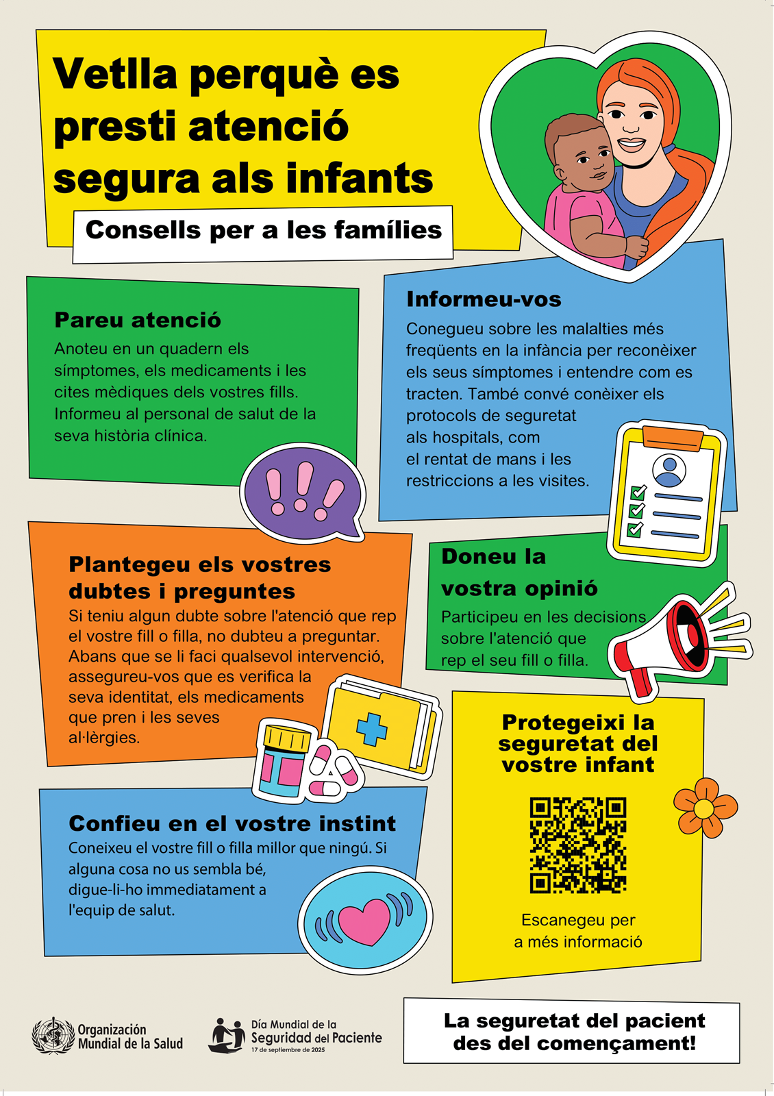Enguany, la campanya es presenta sota el lema ‘Seguretat del pacient des del principi!’ i posa el focus en la necessitat de garantir una atenció segura per a tots els nounats i infants, amb especial atenció als nadons des del naixement fins als nou anys.