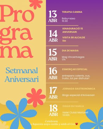 Dijous tindran una jornada gastronòmica amb un esmorzar de forquilla. A continuació, podran gaudir d’un dinar especial amb els plats preferits de Fernando Verdú, fundador de la residència. A la tarda, hi haurà un bingo amb premis.