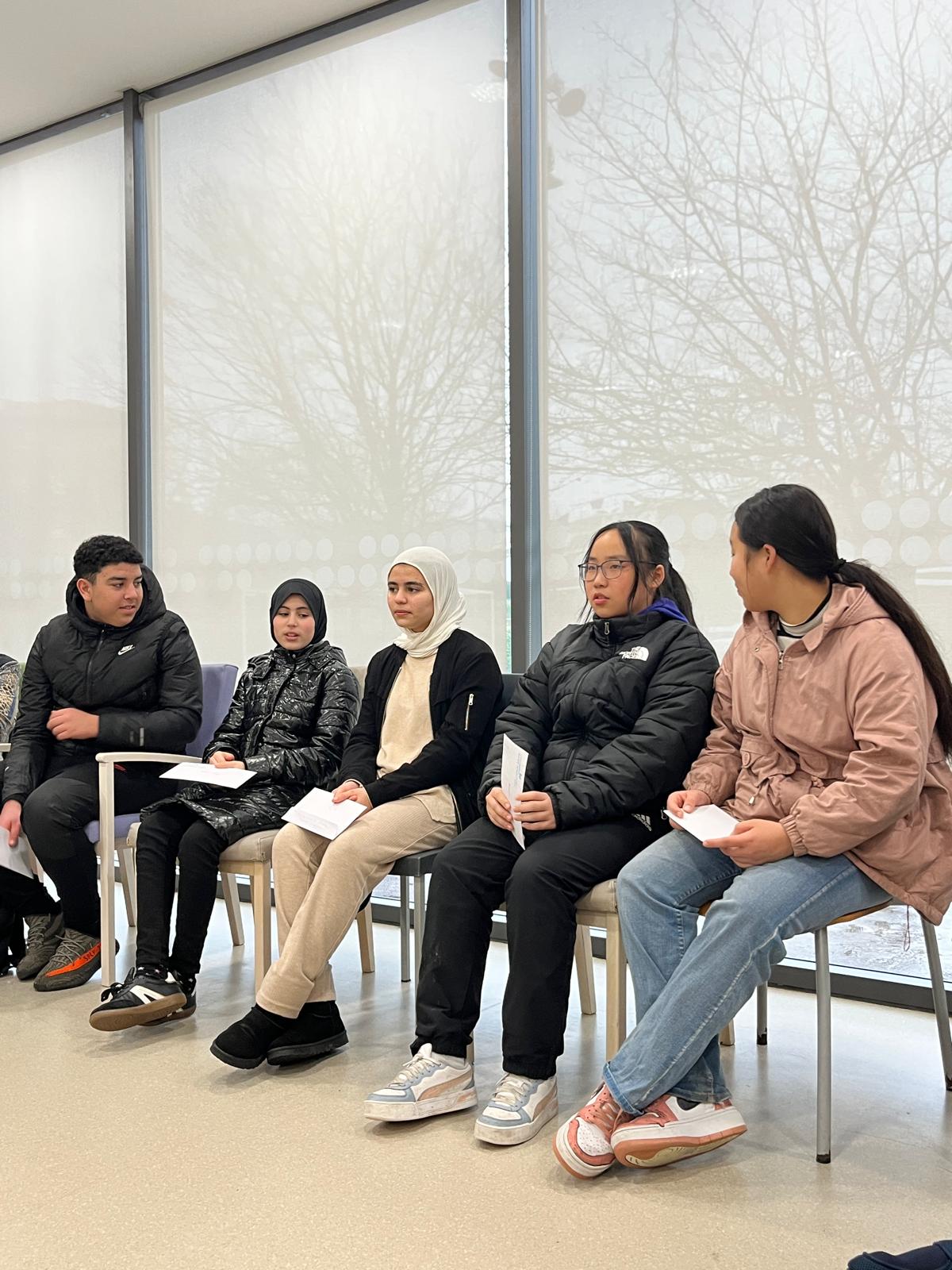 Per als vuit alumnes, pertanyents a l’Aula d’Acollida del centre educatiu, la trobada és una bona oportunitat de practicar el català parlat i, alhora, de compartir bons moments. Cinc d’ells expliquen que els ha servit, per exemple, per cantar conjuntament una cançó d’aniversari, veure que són feliços i que fan moltes activitats, que alguns d’ells són centenaris i que és molt bonic conèixer-los i saber de la seva vida i records. Així ho expliquen.