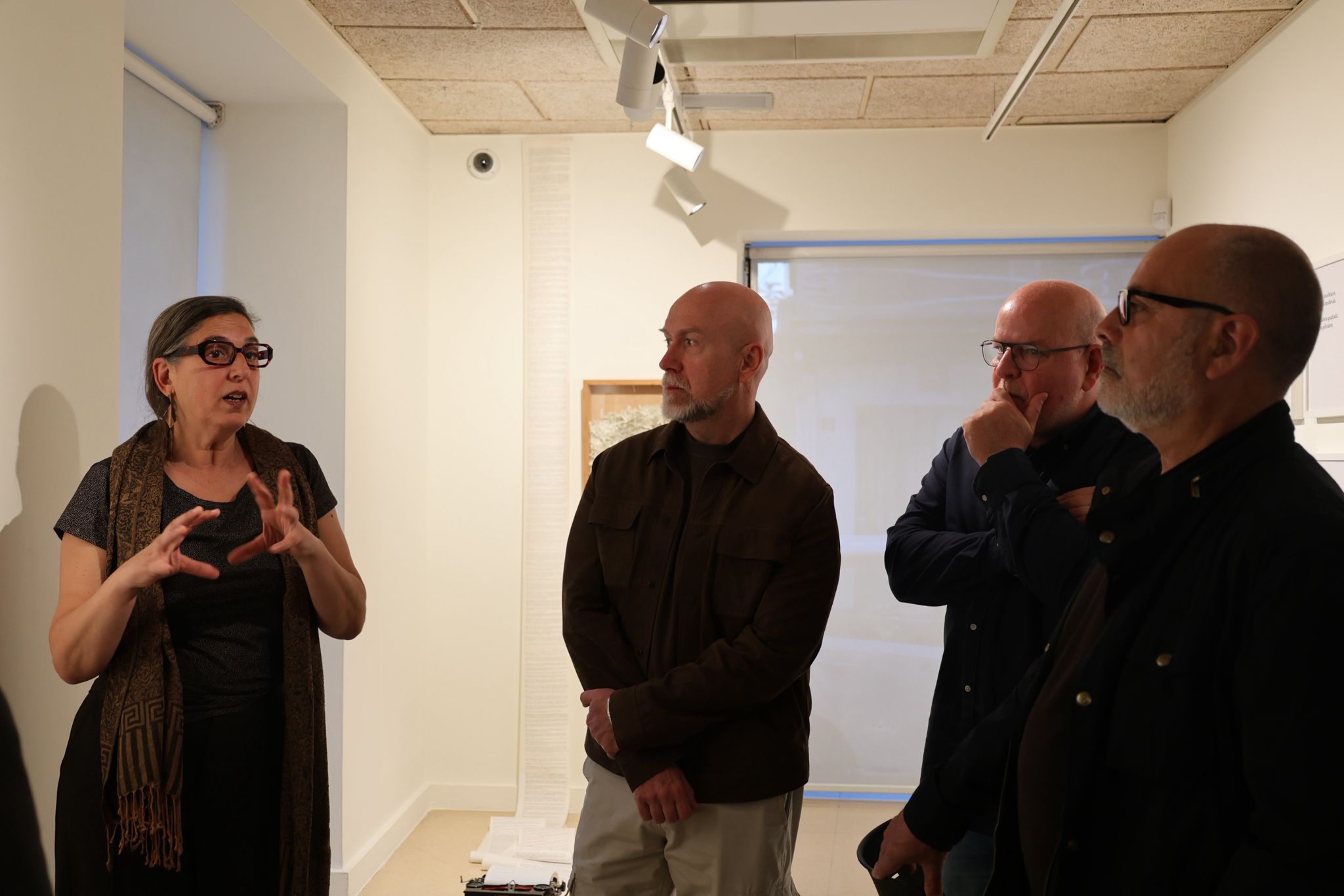 Durant la inauguració, Alsina ha explicat que l’origen de l’exposició parteix d’un interès sostingut per les relacions entre llenguatge, literatura i pràctica artística. “En començar a pensar en una exposició sobre l’escriptura en un sentit ampli, em vaig adonar que hi havia tota una sèrie de punts de contacte entre artistes que, curiosament —o no—, eren totes dones”, ha assenyalat.