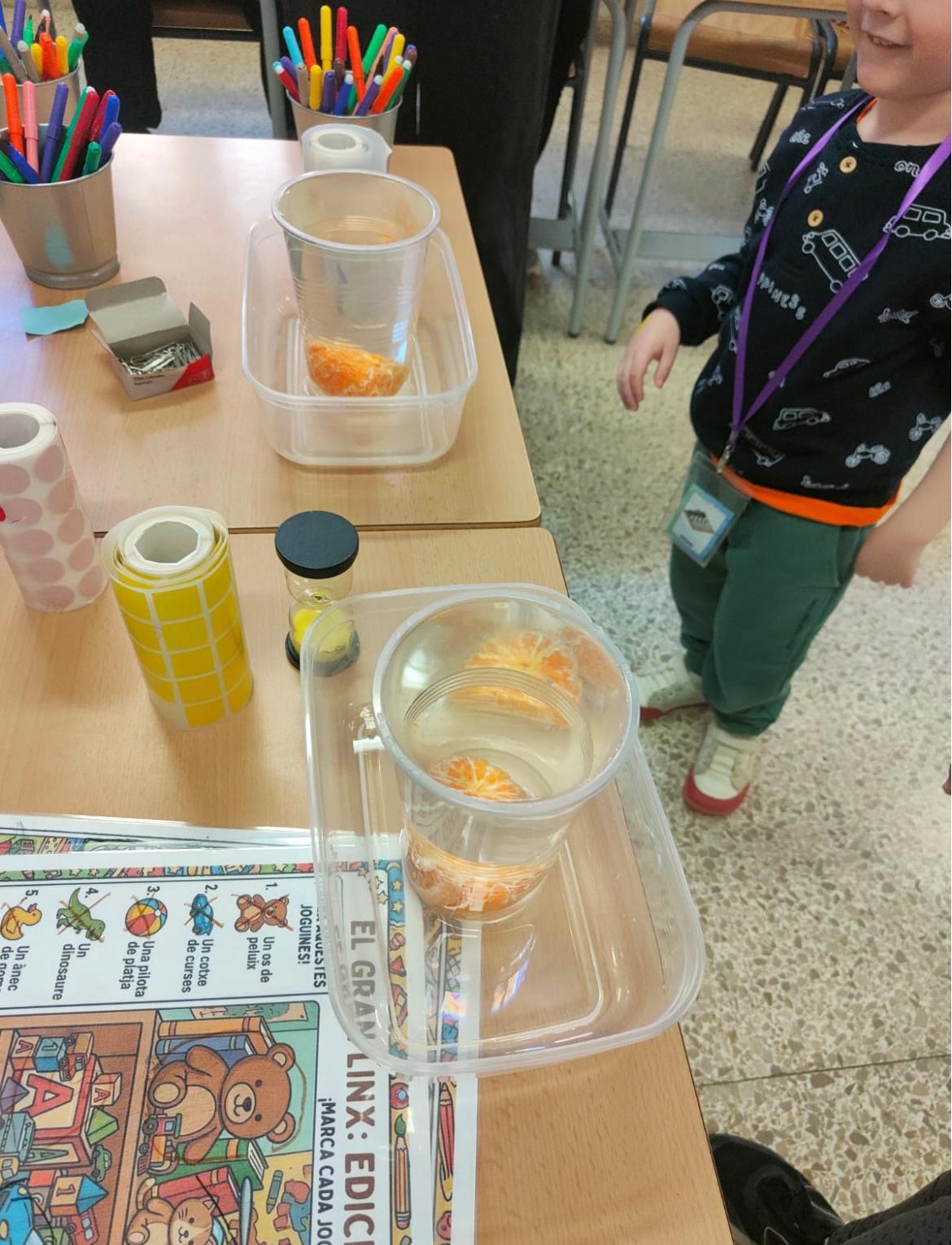 Els tallers van incloure propostes molt diverses. Entre elles, cal destacar ‘El científic boig’, una activitat que va apropar la ciència als infants d’una manera vivencial, manipulativa i divertida. A través de diferents experiments, l’alumnat va descobrir fenòmens relacionats amb la gravetat, la força centrífuga i l’efecte giroscòpic, despertant la curiositat, l’observació i les ganes d’aprendre a partir de l’experiència.