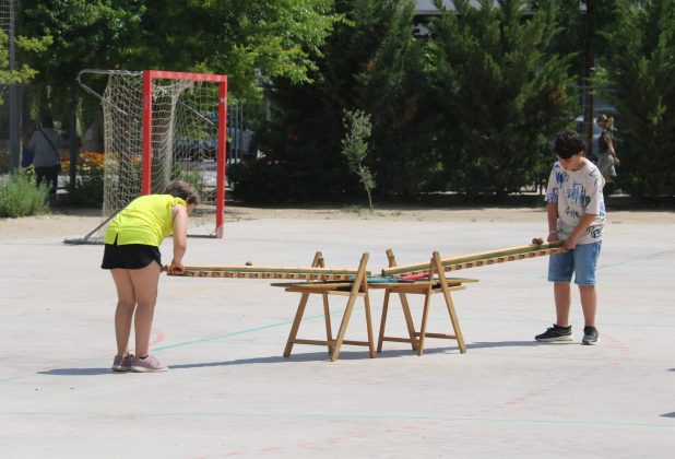 Simultàniament, el pati s’ha omplert d’activitats lúdiques pensades per a totes les edats, fomentant la participació de famílies i infants. A les 11.30h, el gimnàs de l’escola ha acollit la projecció d’un vídeo commemoratiu amb records entranyables que han arrencat aplaudiments i somriures entre el públic.