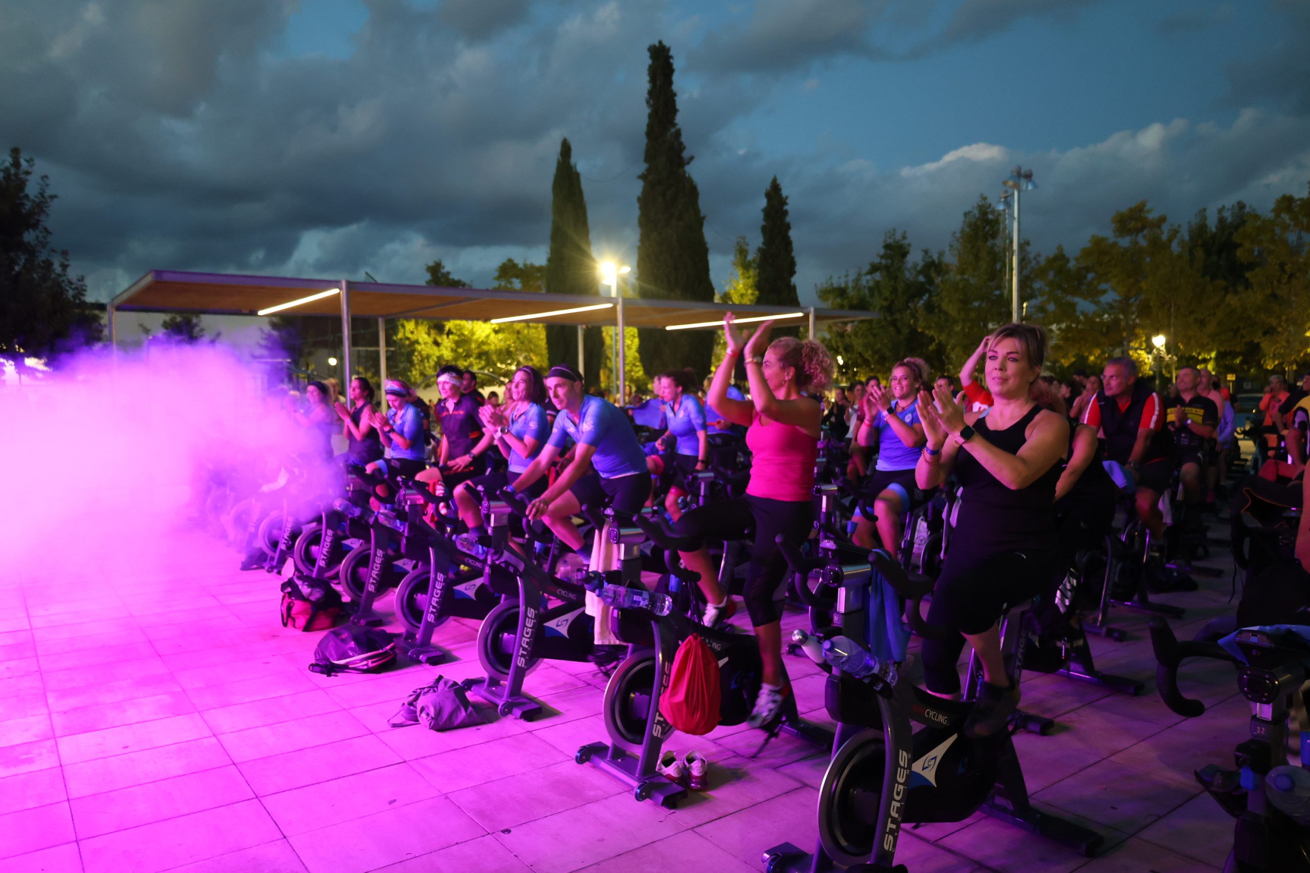 Una de les activitats més multitudinàries va ser la sessió de ciclisme a l’aire lliure, celebrada el divendres 26 de setembre a la plaça Pere Teixiné. De 20.00 a 22.00 h, dues-centes bicicletes van omplir l’espai en una sessió que, any rere any, augmenta la participació i la qualitat. En aquesta edició s’han ampliat tant la durada com el nombre de bicicletes, permetent que més persones gaudissin d’una experiència esportiva vibrant.