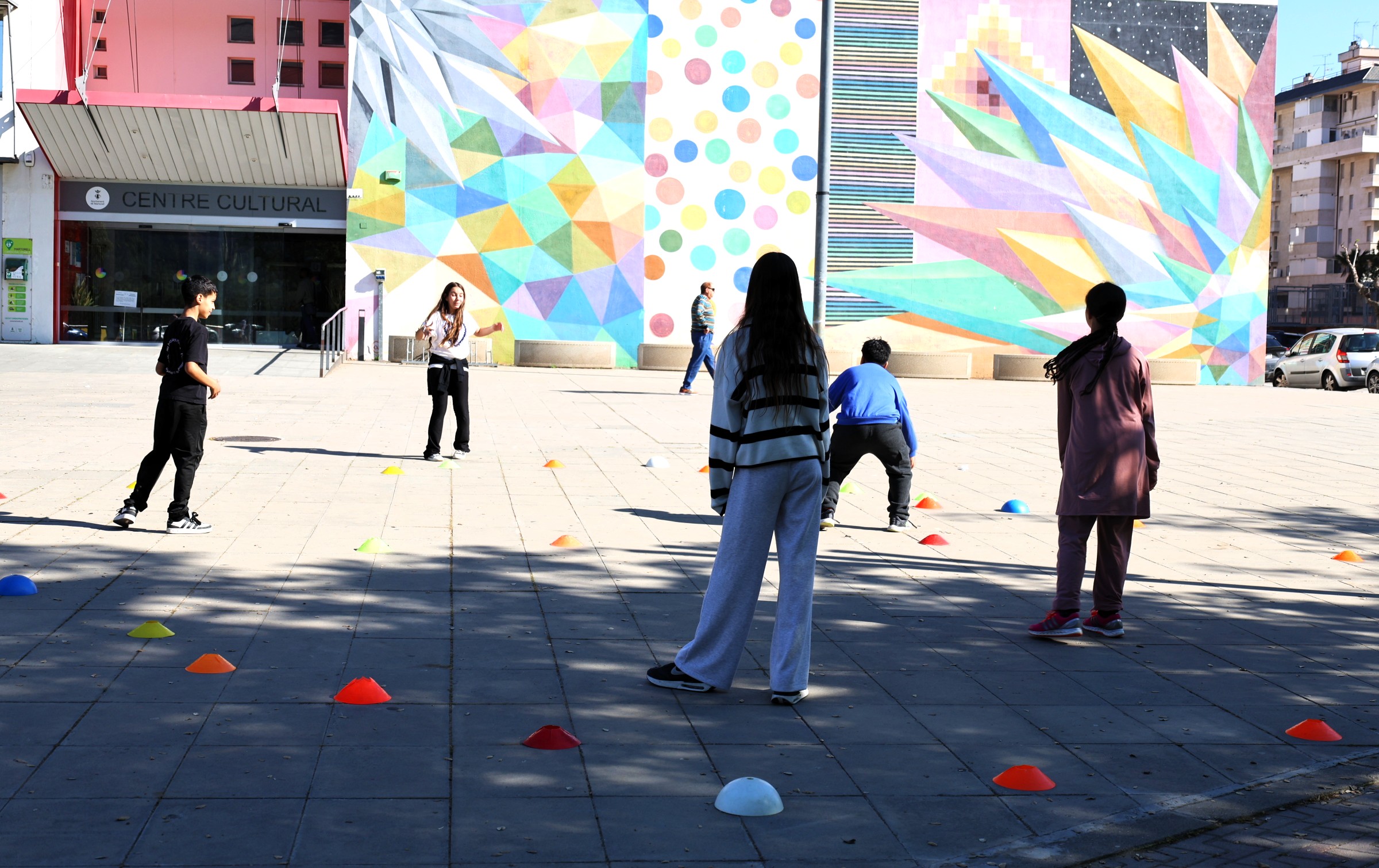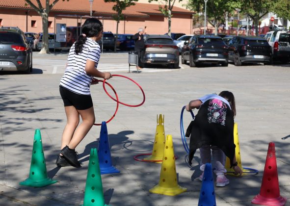 Els instituts també han tingut un paper destacat en la jornada. L’alumnat del Pompeu Fabra ha realitzat activitats a la plaça del Pavelló Esportiu Municipal al llarg de tot el matí, mentre que el Joan Oró ha distribuït les seves sessions entre la plaça de Sant Joan Bosco i la plaça de Lluís Rigalt, amb diferents grups d’ESO. La Mercè ha optat per una proposta diferent amb una gimcana per la Vila, implicant l’alumnat en un recorregut actiu pel nucli urbà.