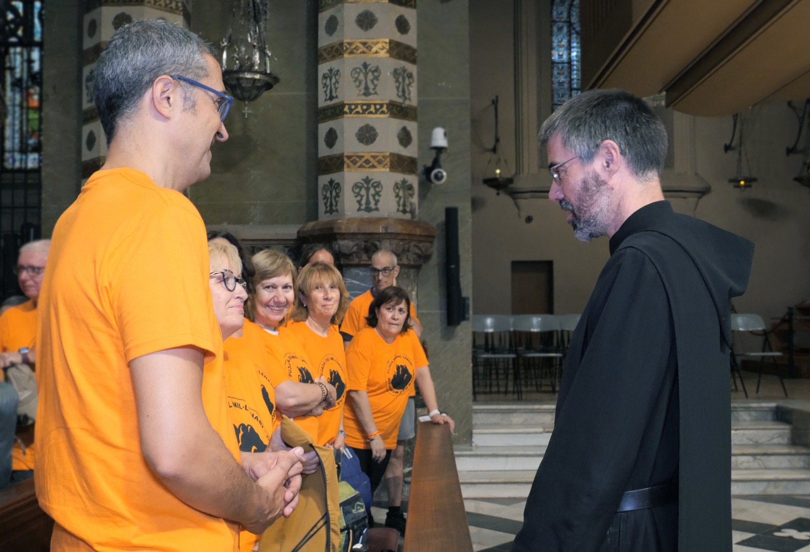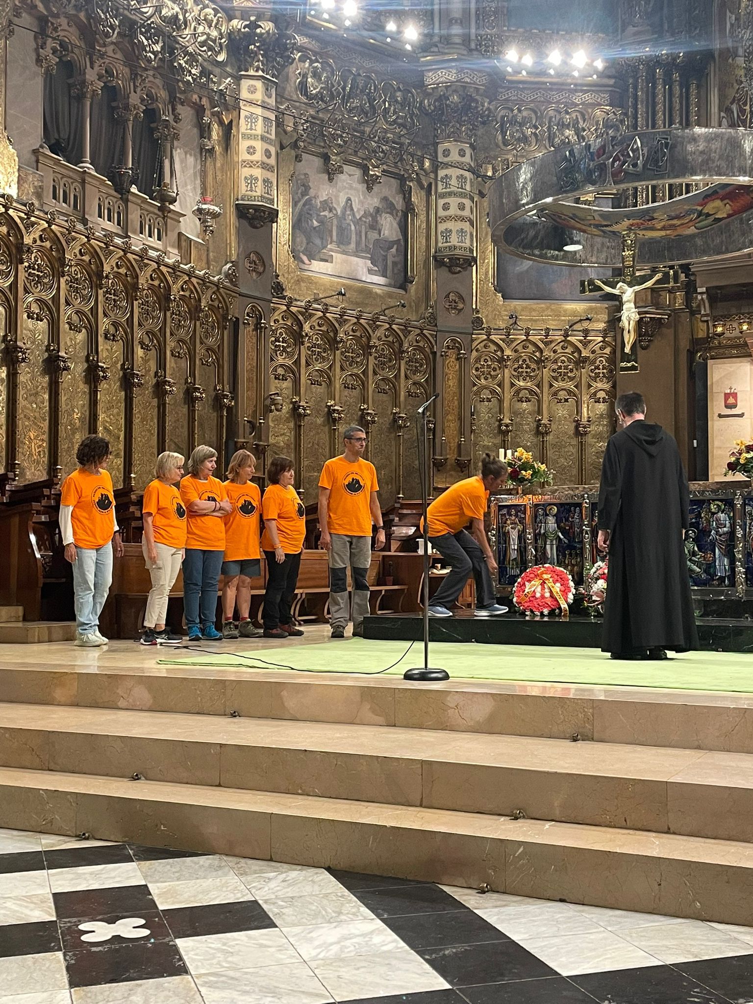 A quarts d’una del migdia, el pare Prior va rebre els participants a la Basílica, on va adreçar unes paraules d’agraïment, tot seguit una representació de la junta d’Òmnium del Pla de Montserrat van fer una ofrena a l’altar major.