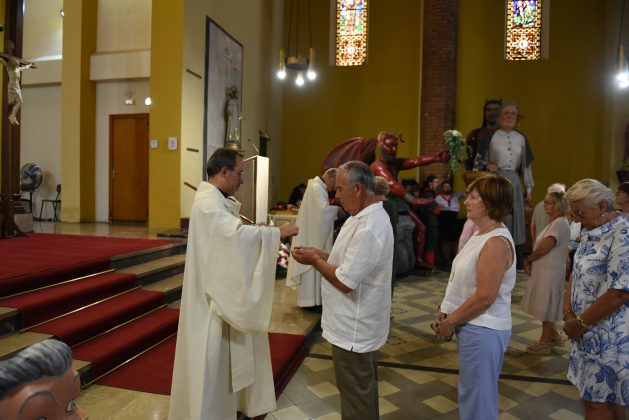 Al matí, L’Enrajolada Casa-Museu Santacana ha tornat a rebre públic amb les visites teatralitzades en tres sessions, que han permès descobrir la història i els personatges d’aquest emblemàtic edifici. A les 12.00h, l’Església de Santa Maria ha acollit la missa solemne en honor a la patrona, amb la participació de la Colla de Gegants, Capgrossos, Diables i Dracs. En acabar, les figures festives han protagonitzat l’“Hora de plegar!”, una cercavila que ha recorregut els carrers del nucli antic amb tastets oferts pels veïns.
