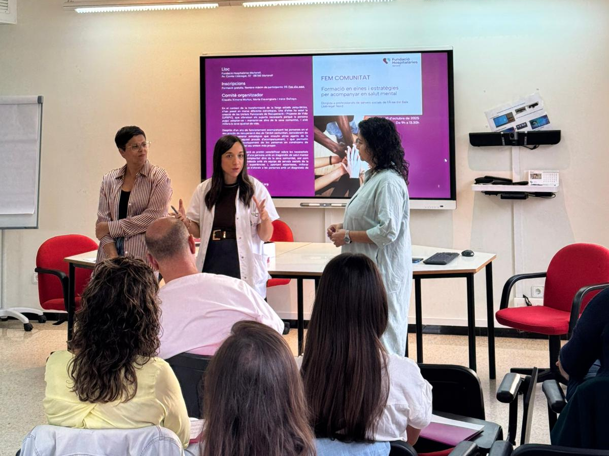 Els dies 3 i 10 d’octubre es va dur a terme la formació Fem Comunitat: Eines i estratègies per acompanyar en salut mental a l’aula docent de la Fundació Hospitalàries de Martorell. Hi van assistir representants dels serveis socials dels municipis de Martorell, Pallejà, Sant Andreu de la Barca, Olesa de Montserrat, Esparreguera, Abrera, Gelida, Castellví de Rosanes, Masquefa i el Bruc.