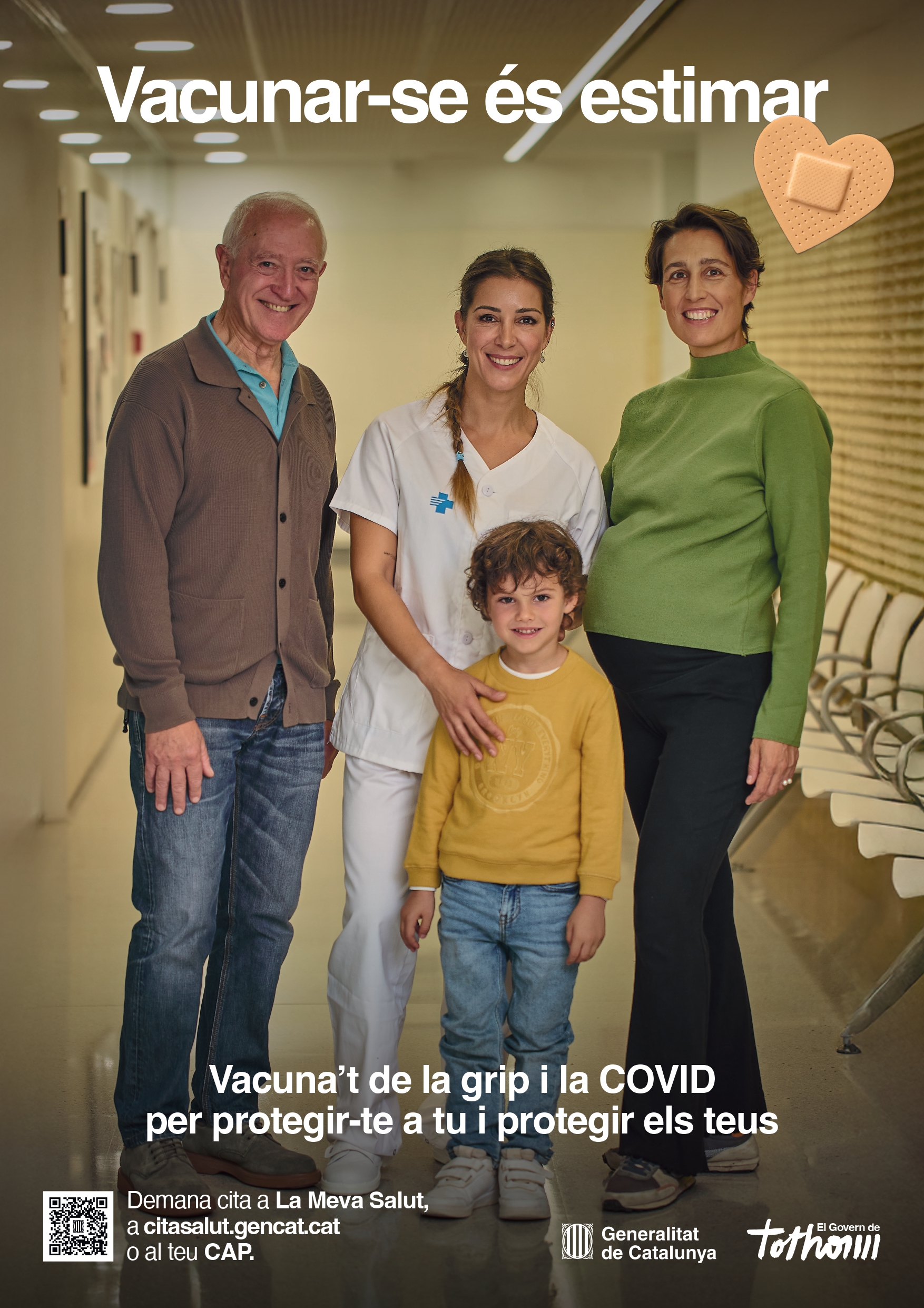Amb el lema ‘Vacunar-se de la grip i la COVID és estimar’, el Departament de Salut de la Generalitat ha engegat una campanya de comunicació adreçada a la ciutadania. La iniciativa apel·la a la responsabilitat individual de vacunar-se com una manera de tenir cura de la pròpia salut i de les persones de l’entorn. La campanya té presència tant en mitjans tradicionals —televisió, ràdio i premsa escrita—, com en canals digitals, incloent-hi xarxes socials i pàgines webs. A més a més, aquest any, l’spot també es podrà veure a plataformes com Netflix, Amazon Prime, 3Cat, Mitele, Atresplayer i Movistar.